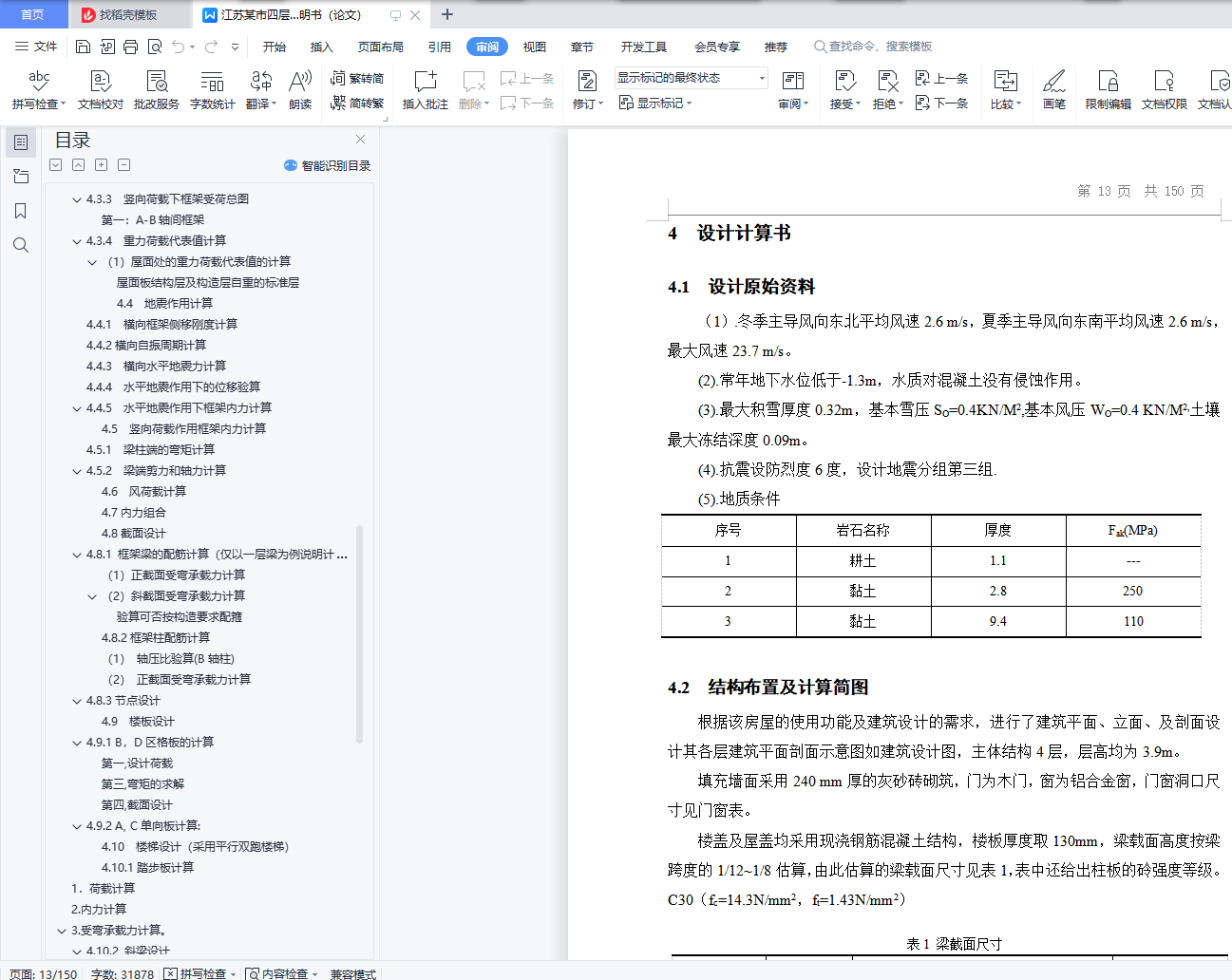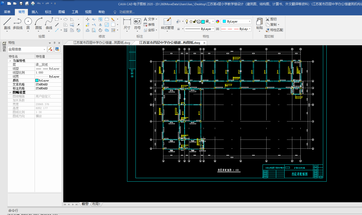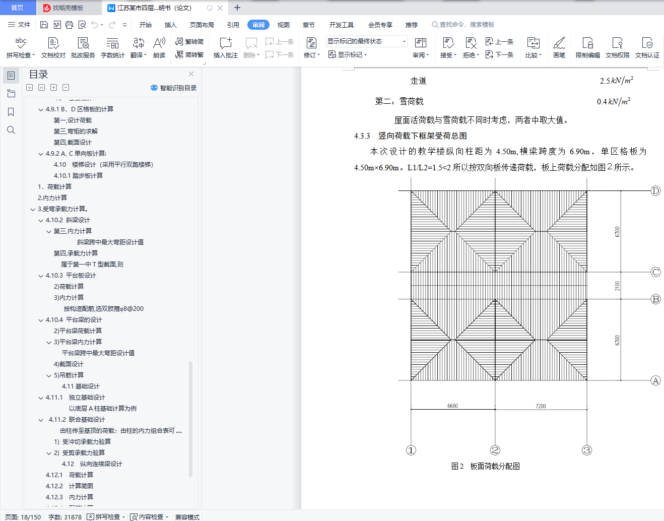 本项目为某小学教学楼,共四层,设计年限为50年,抗震设防烈度为6度,结构类型为多层钢筋混凝土框架结构,楼板为双向板,楼梯采用板式楼梯,基础采用柱下独立基础。框架结构内力计算时,在竖向荷载作用下框架内力近似计算时采用分层法,在水平荷载作用下框架内力近似计算时采用改进反弯点法(D值法)。在计算过程中对梁的弯矩进行了调幅,板内力计算采用弹性理论计算方法。对建筑中出现的墙体均直接放在梁上,墙、板的重量传给梁,梁再传给柱,传力路线明确。