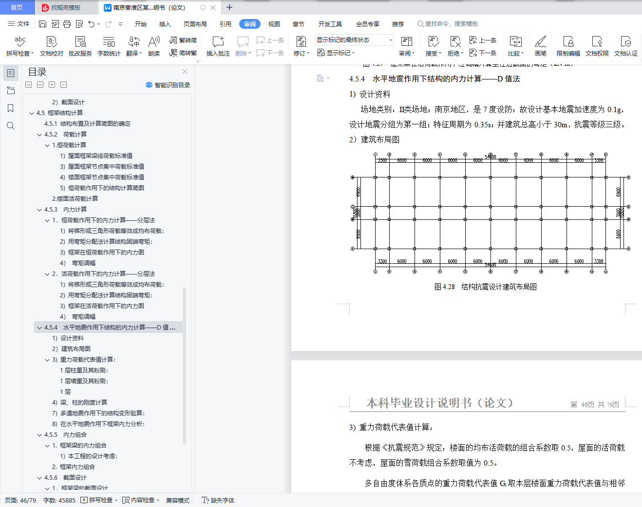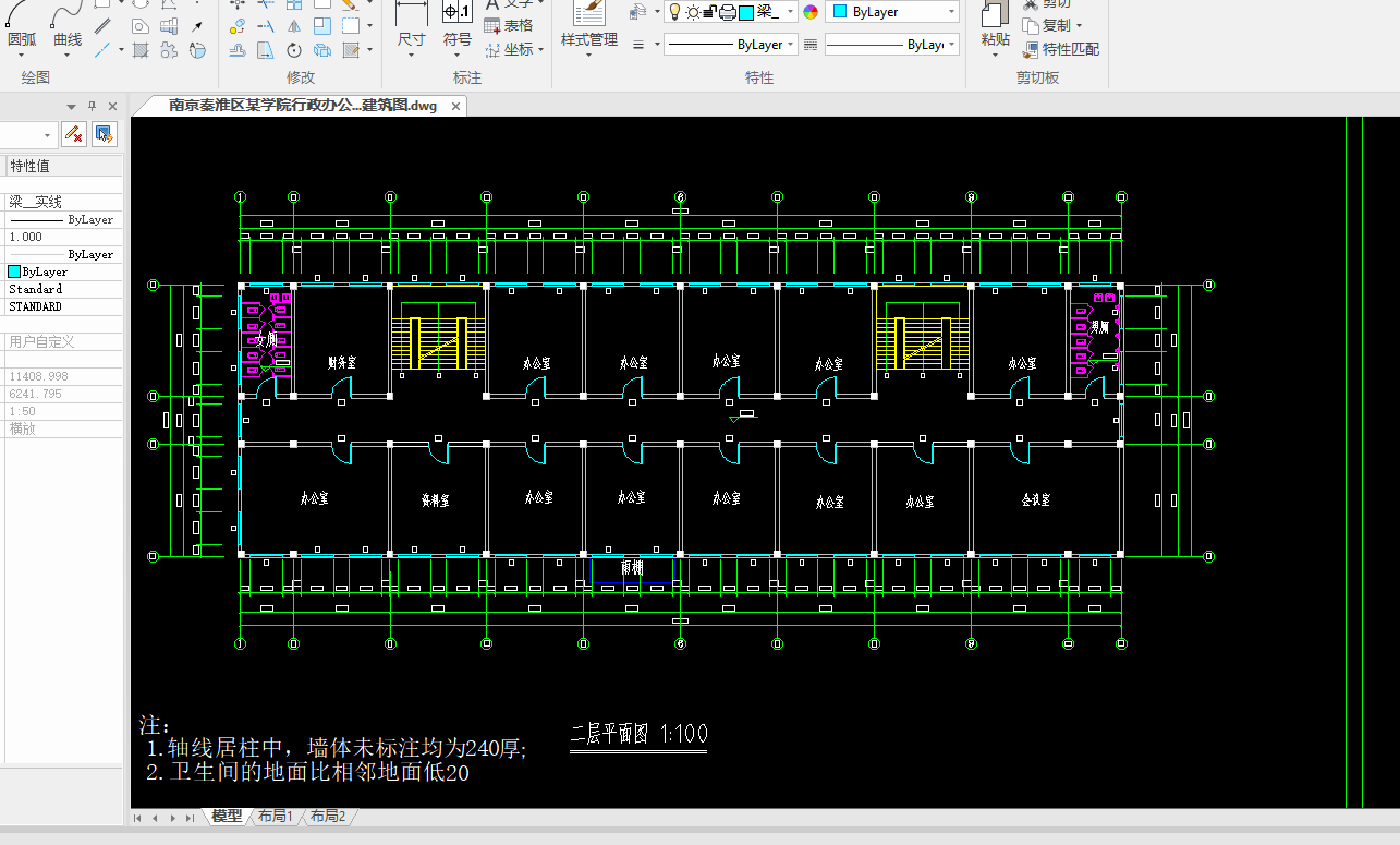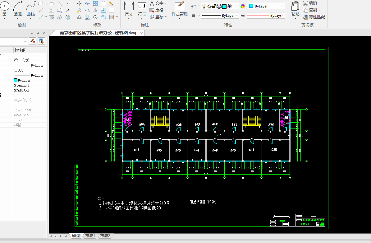 我的毕业设计课题是南京秦淮区学院办公楼的建筑布局和结构计算,本工程为三层建筑,建筑面积为2800平方米,在建筑上按照建筑设计规范的标准,合理布局,详细划分功能区,结构上对标准层楼板,楼梯,梁,柱,框架进行设计。方法上选取一榀框架作为研究对象来计算,考虑到现代抗震要求对建筑物的影响,荷载计算后来进行内力组合,其中恒荷载、活荷载的计算利用分层法,水平地震作用采用D值法进行计算,而后计算出框架梁柱的最不利组合结果,完成截面设计。最后运用CAD制图软件绘制平面图,立面图,剖面图,结构配筋图等。最终完成毕业设计计算书。