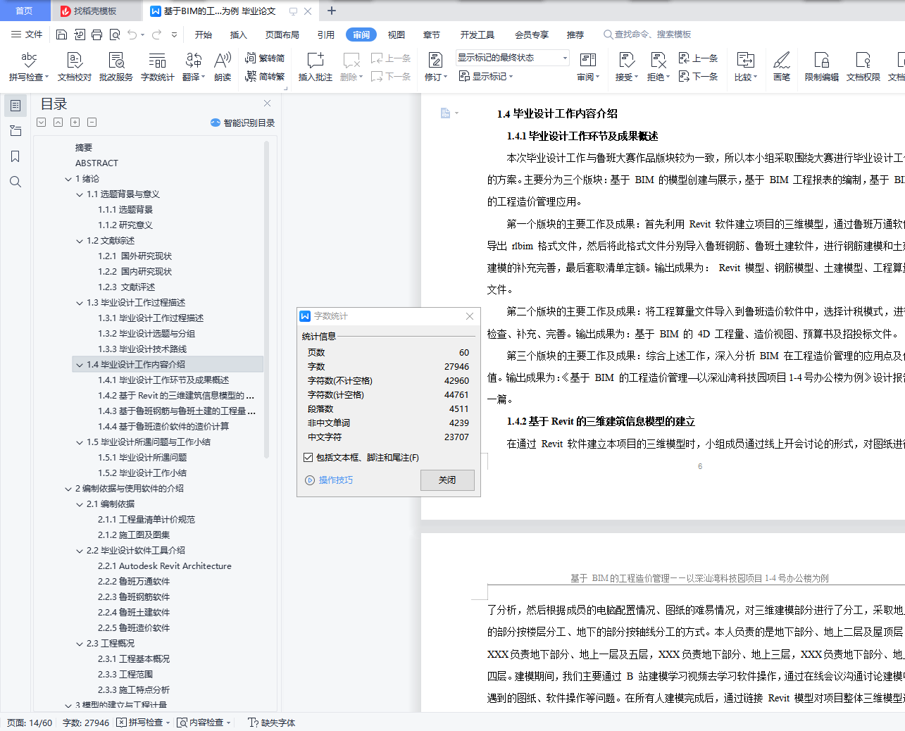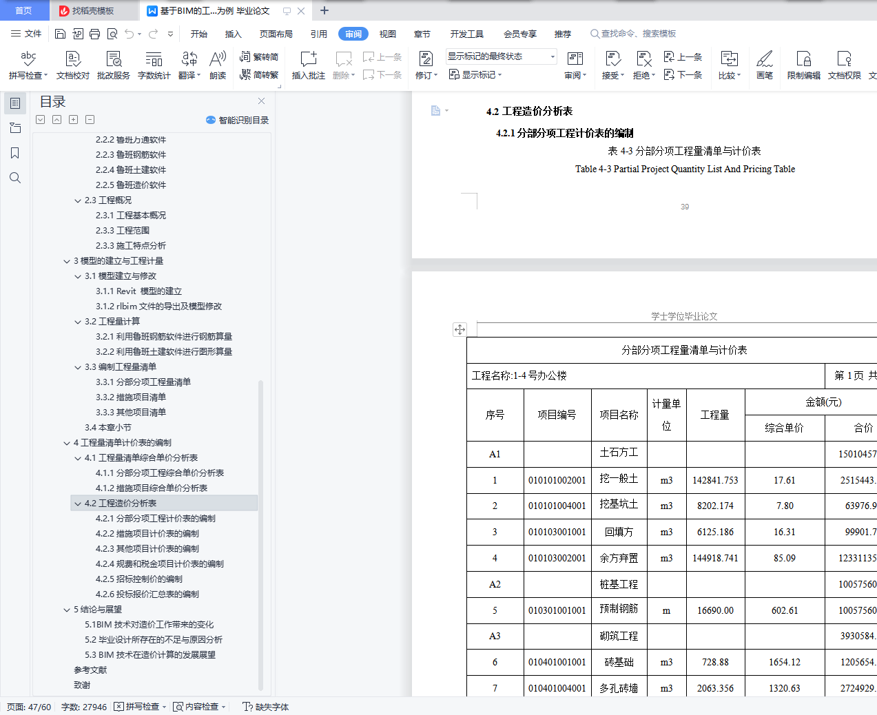 本次毕业设计,笔者与小组成员一起通过 BIM 建模软件建立了土建、钢筋三维模型,之后套取清单定额,计算工程量,输出各类工程数据,并将其导入 BIM 造价软件中,进行人材机组价后,生成各种造价文件,满足造价人员的需求。相较于传统造价管理的精度低、耗时久、数据静止性,利用 BIM 平台,更加高效、准确、灵活,可以实现造价全过程管理,与多项目高效协同,提高资源利用率、降低工程成本,达到提质增效的目的。