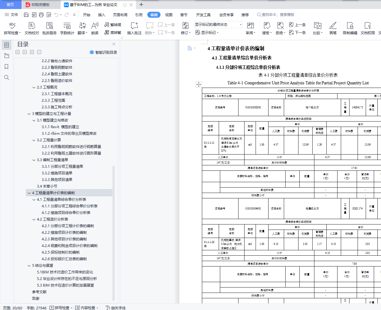 4.2工程造价分析表