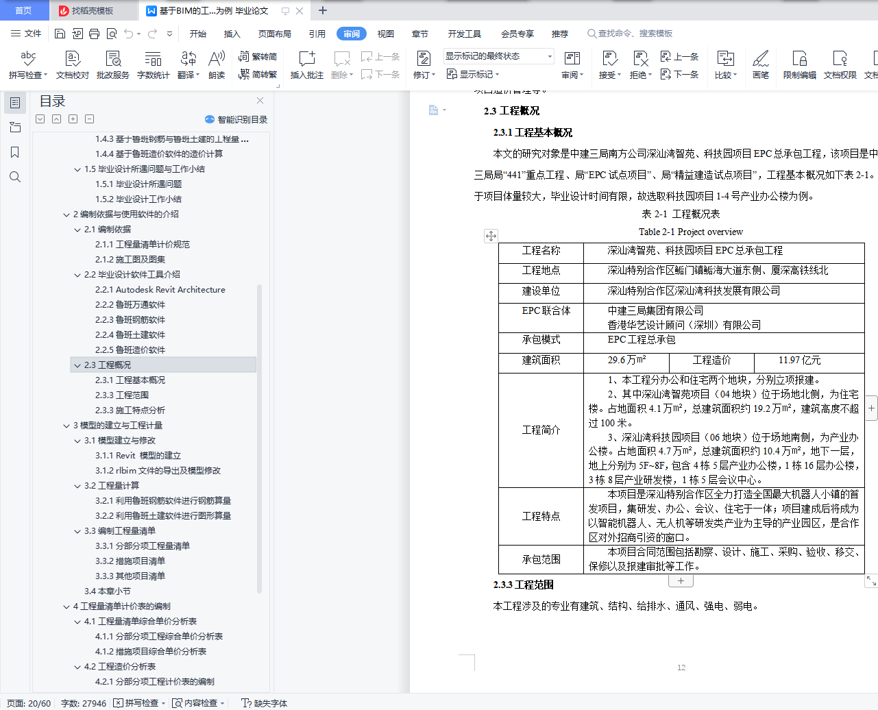 表2-1 工程概况表