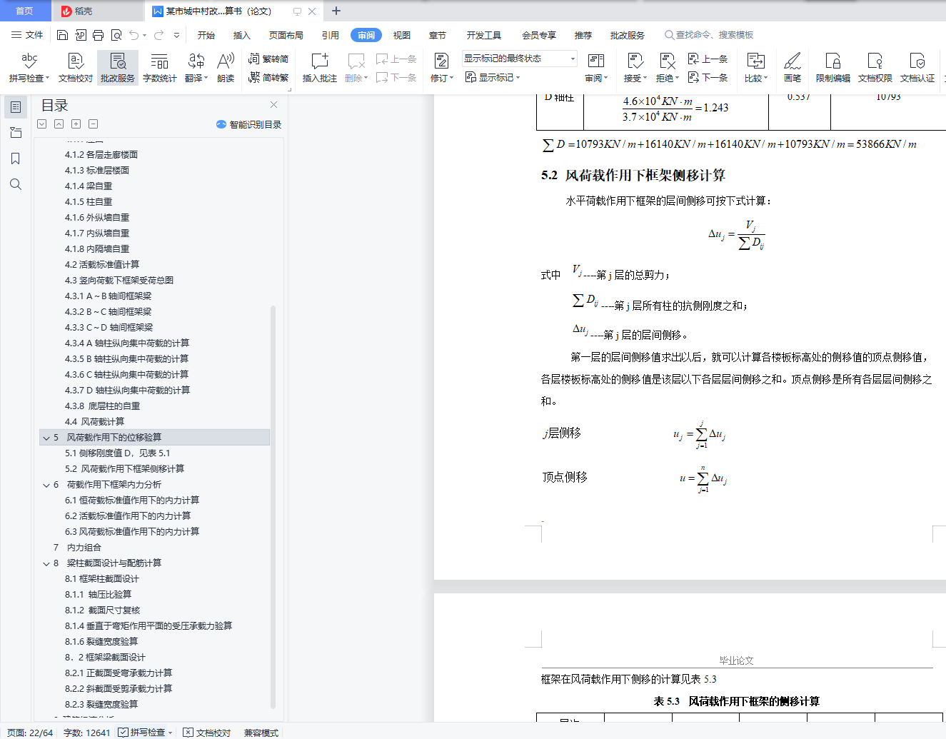 5.2 风荷载作用下框架侧移计算 19