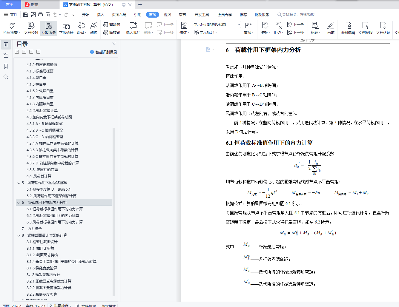 6.3风荷载标准值作用下的内力计算 31