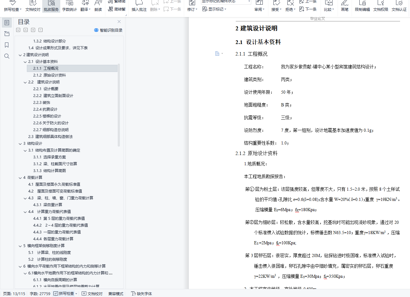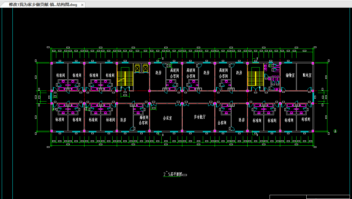本设计题目为“我为家乡做贡献-镇中心某小型宾馆建筑结构设计”。该工程为全现浇五层钢筋混凝土框架结构,抗震设防烈度为七度,灌注桩基础。