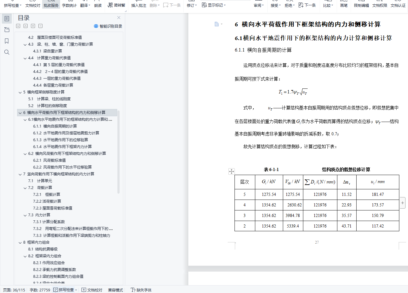 6.1横向水平地震作用下的框架结构的内力计算和侧移计算