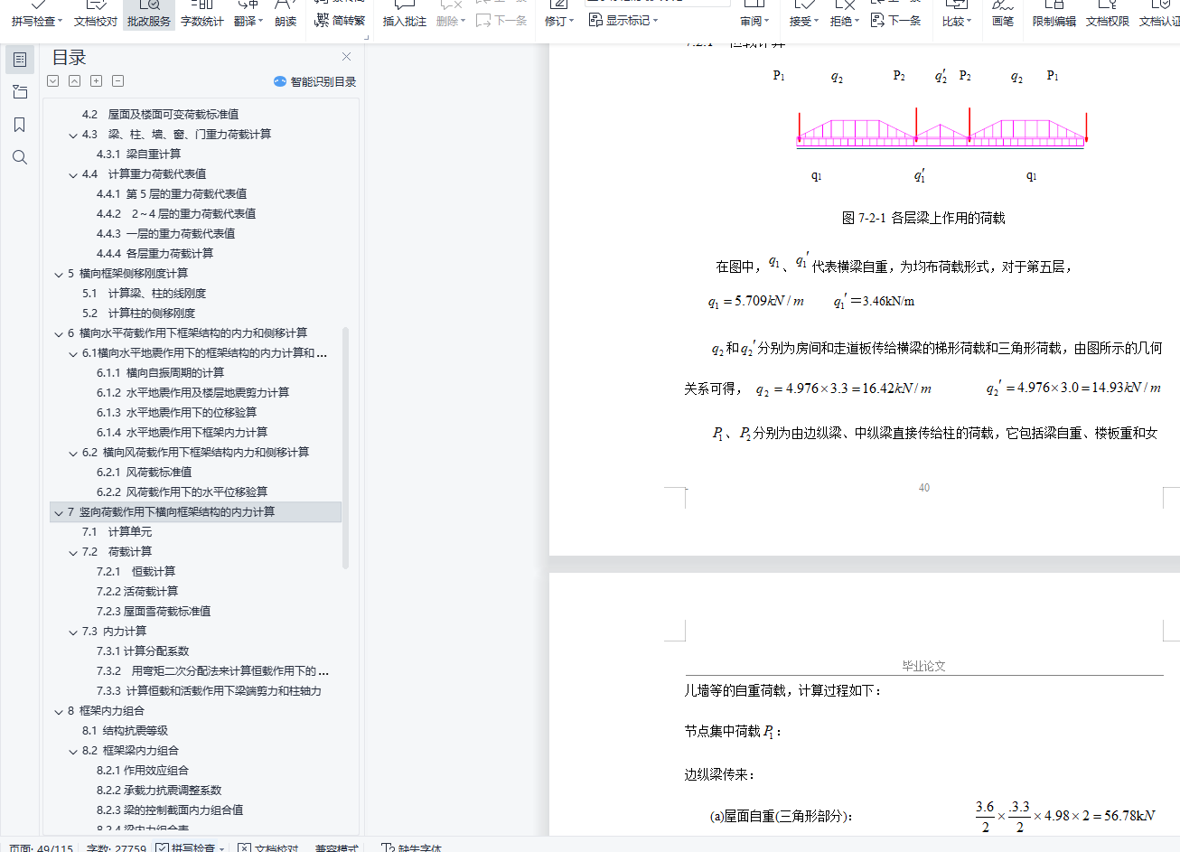7.3.3 计算恒载和活载作用下梁端剪力和柱轴力