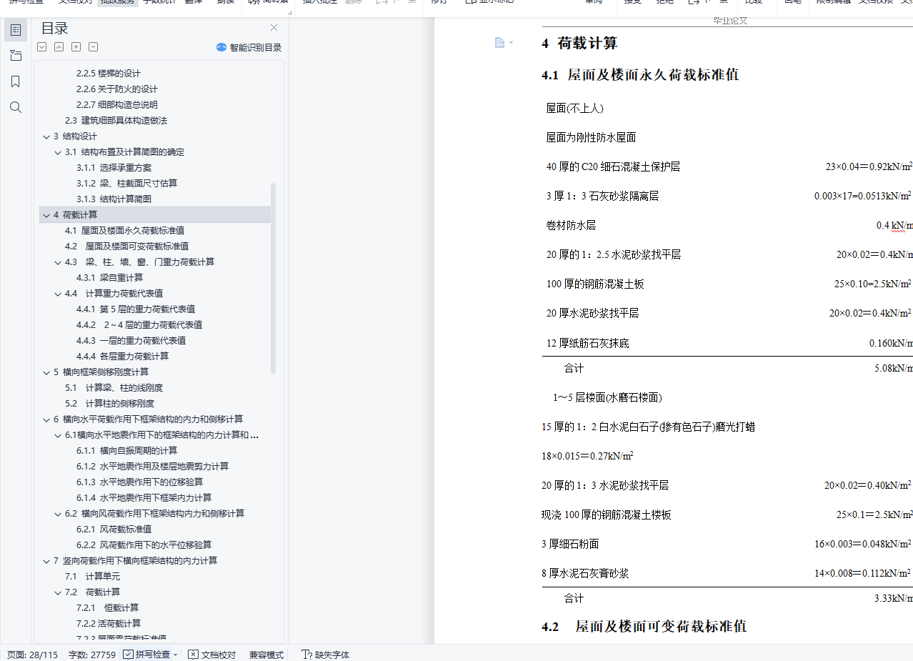 4.3 梁、柱、墙、窗、门重力荷载计算