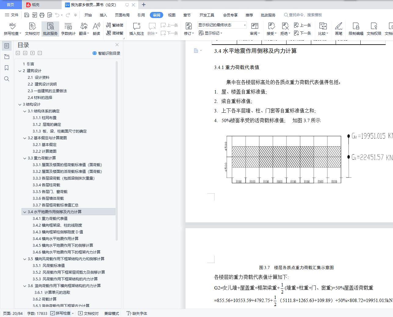 3.5.2 风荷载作用下框架层间剪力及侧移计算