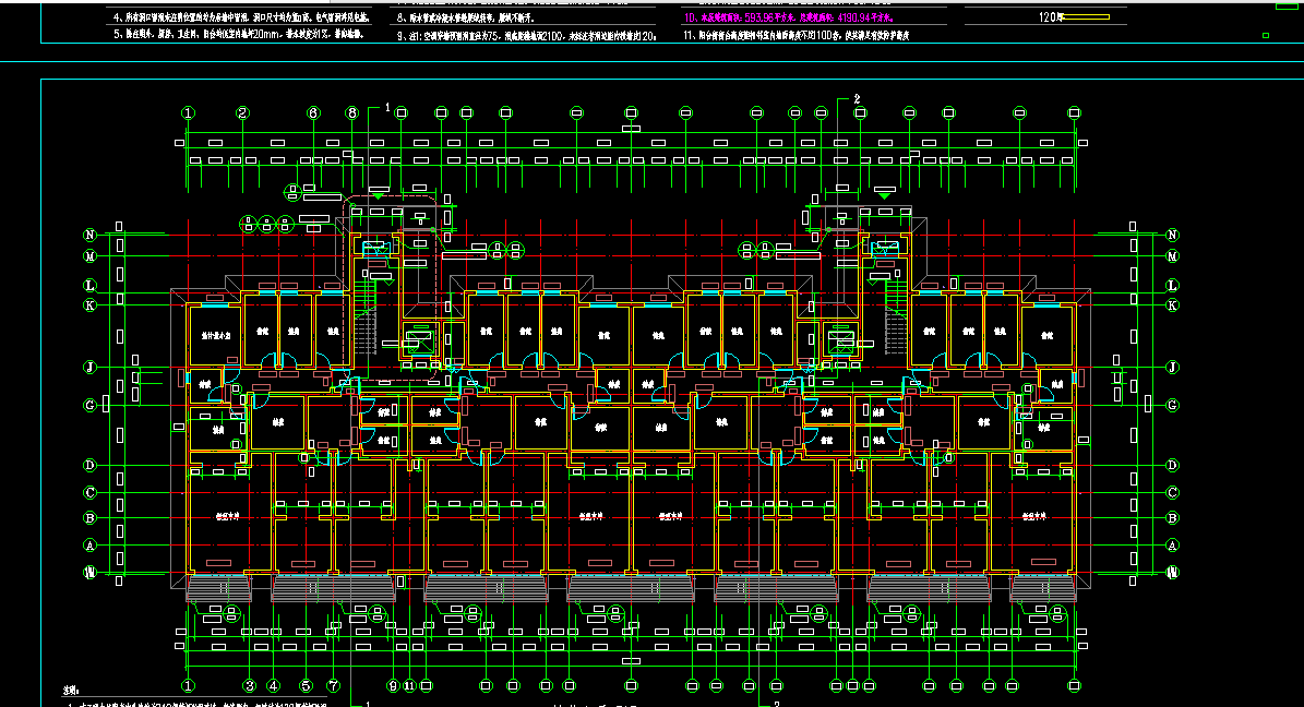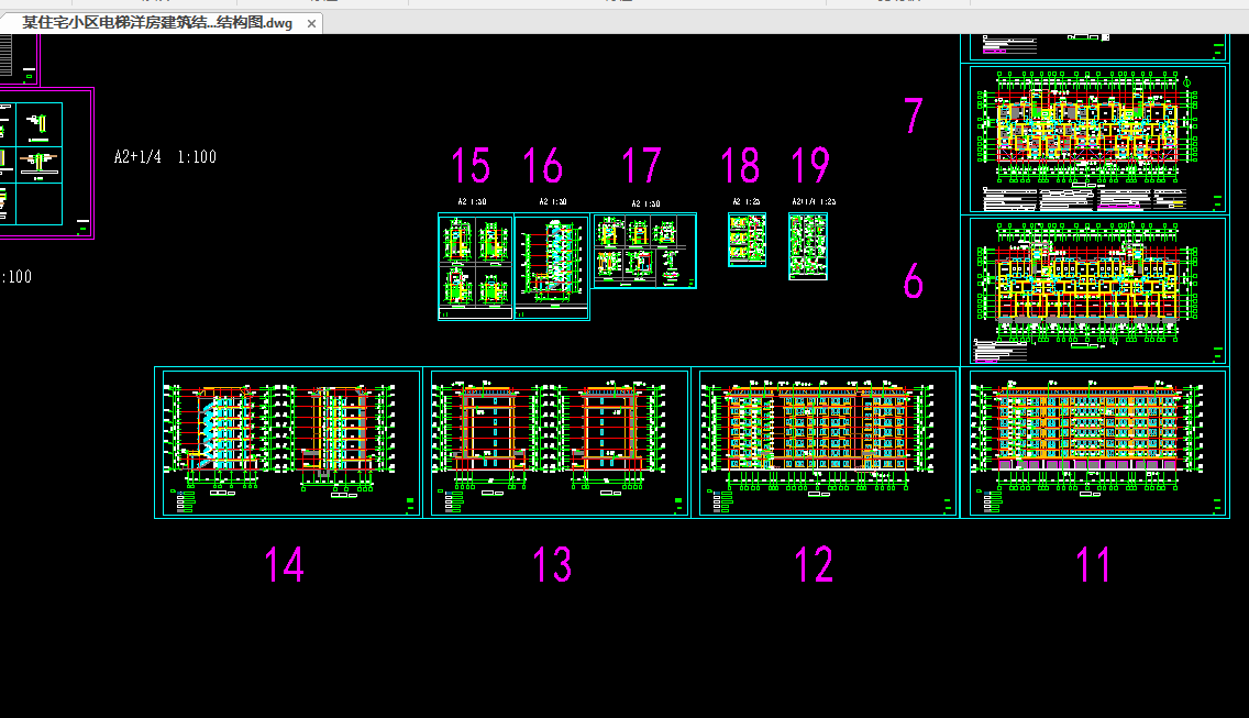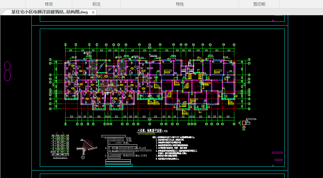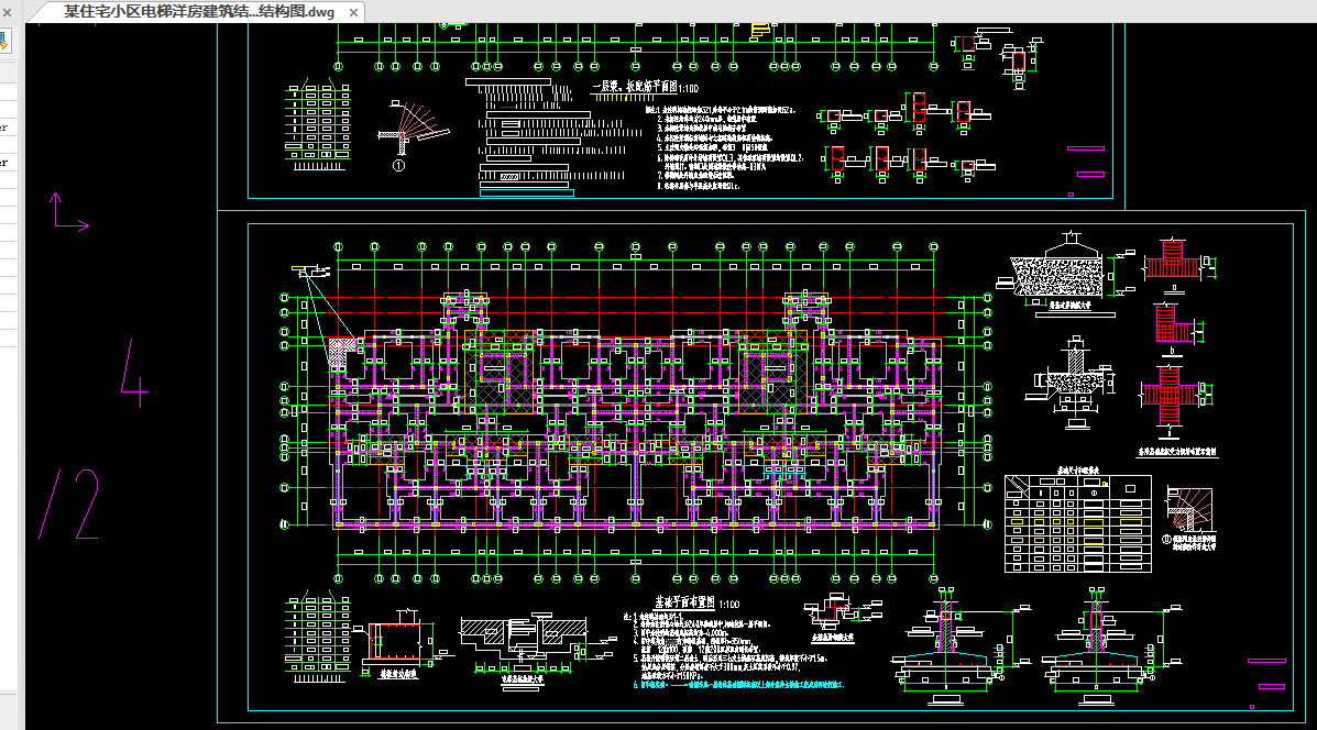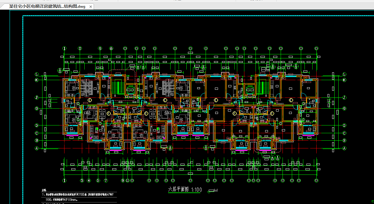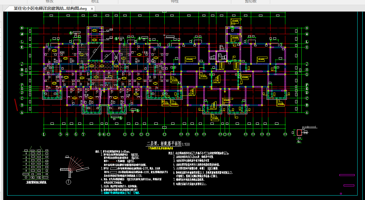 This design is the building structure design of a residential house in a residential area. This building is a unit residential building, with each unit equipped with an elevator and an evacuation elevator. The elevator is a barrier-free elevator and an elevator without computer room.The first floor above ground is storage (it is strictly prohibited to store and use fire hazard for A, B, C items), building area of 4190.94M2, building height: 20.85M, including residential building area: 3412.36M2. It is 49.040m from east to west and 18.840m from north to south. The total height of the building is 20.250m, the storage room floor height is 2.7m, and the standard floor height is 2.9m.