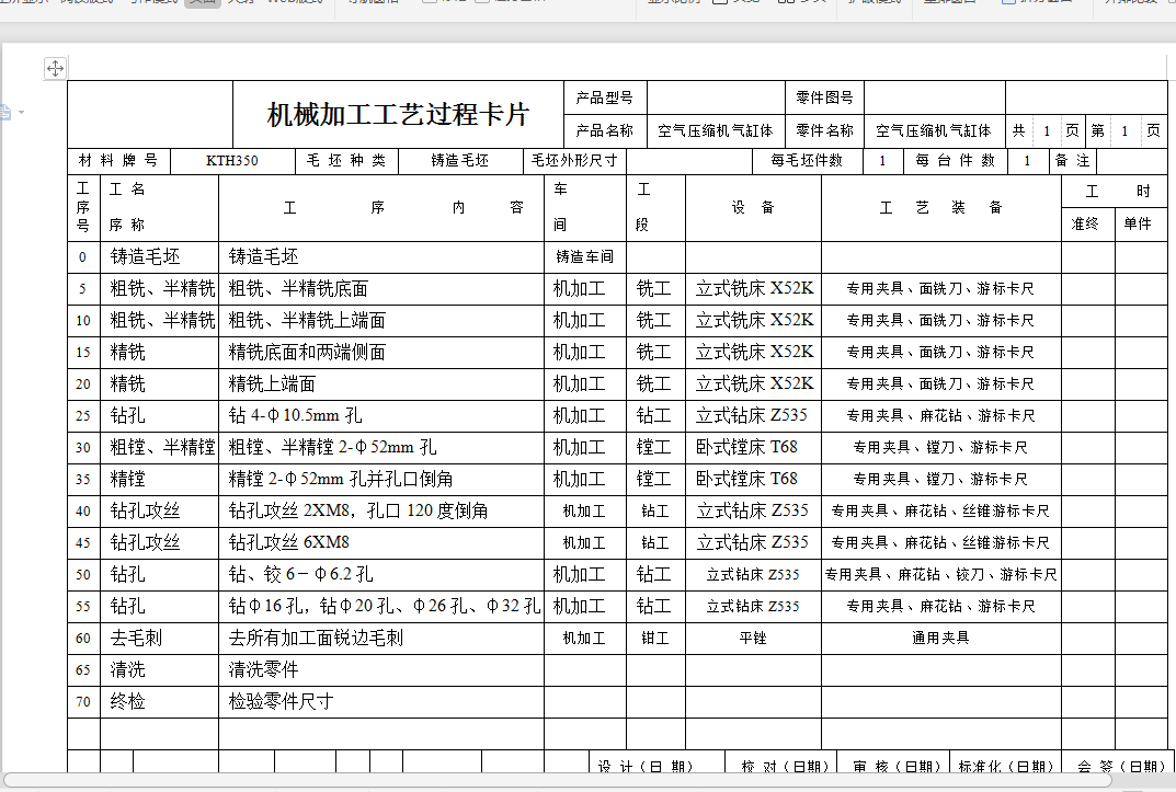 2.4 空气压缩机气缸体加工主要工序安排 6