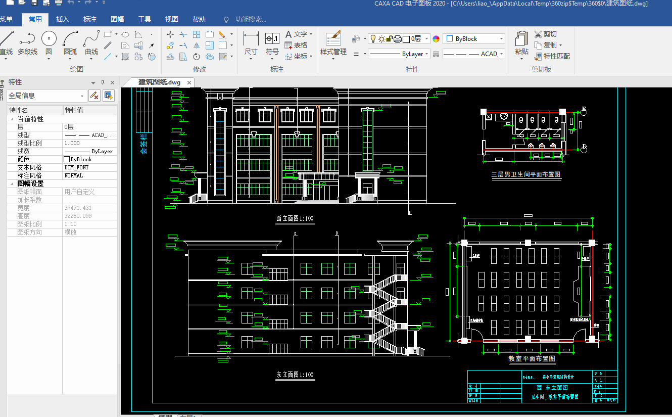 The architectural design part reflects the modern architectural concept of "people-oriented". The design of indoor and outdoor space should fully consider the use requirements and activity characteristics of teenagers, and create a safe, applicable, beautiful and lively building and outdoor environment, so that students can grow up healthily and happily.In line with the design principle of "comfortable, safe, economic", to improve the use efficiency of the teaching building as the goal, to improve the overall function of the teaching building.According to the requirements of the relevant building specifications, the design of the plane, facade, section and fine components of the building was completed, paying attention to the use of economic, reasonable and advanced architectural technology, and all the design drawings use tianzheng architectural software.