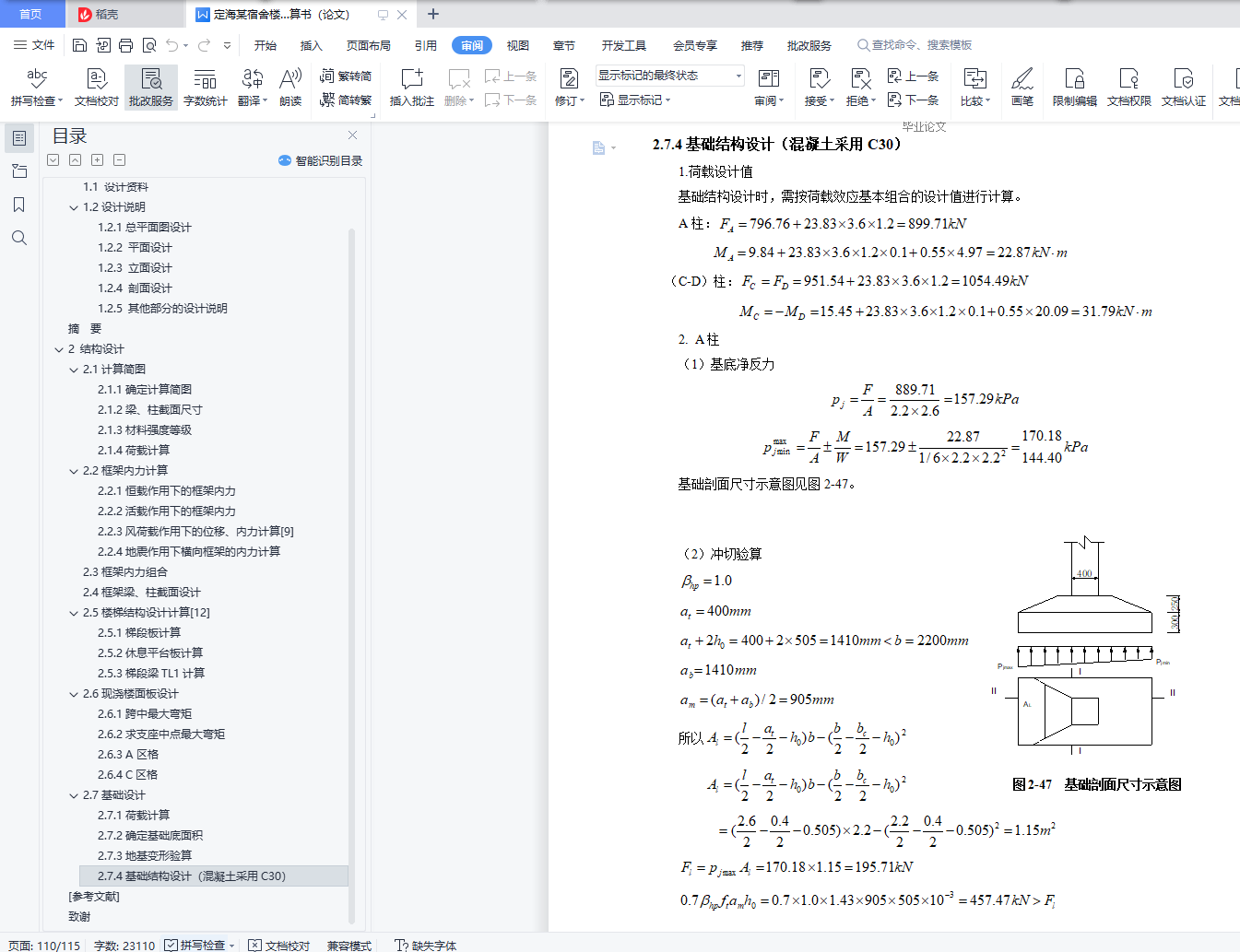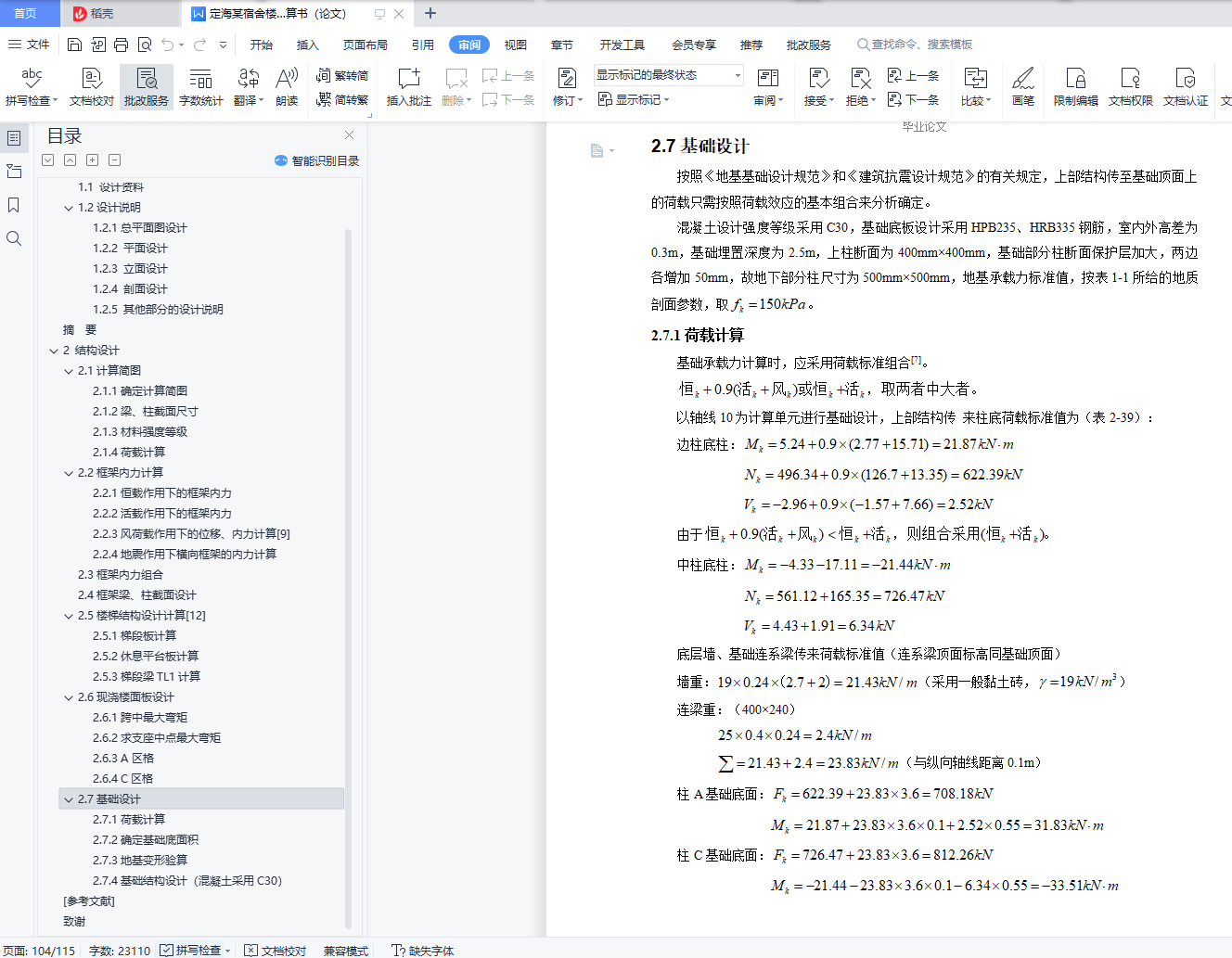 [Abstract]This design is the structural design of a dormitory building in Dinghai District of Zhoushan City, mainly including two parts: architectural design and structural design.The dormitory building is 16.5m high, the fire resistance rating is class two, and the seismic fortification intensity is 7 degrees.The content of architectural design includes plane, facade and section design.Structural design includes frame design, component design and foundation design.Among them, the frame adopts reinforced concrete transverse frame load-bearing layout scheme, the foundation adopts reinforced concrete column under the independent foundation.In this paper, the reinforcement of a 10-axis transverse frame is designed.After determining the framework layout and distribution statistics to obtain the size of various loads and effects, a reasonable and simple calculation method is selected to conduct the internal force calculation and load effect combination under the load effect, and on this basis, the internal force combination is made according to the most unfavorable principle, and finally the reinforcement results are obtained.In addition, PKPM was used in the design of the software design, drawing the structure construction drawings.