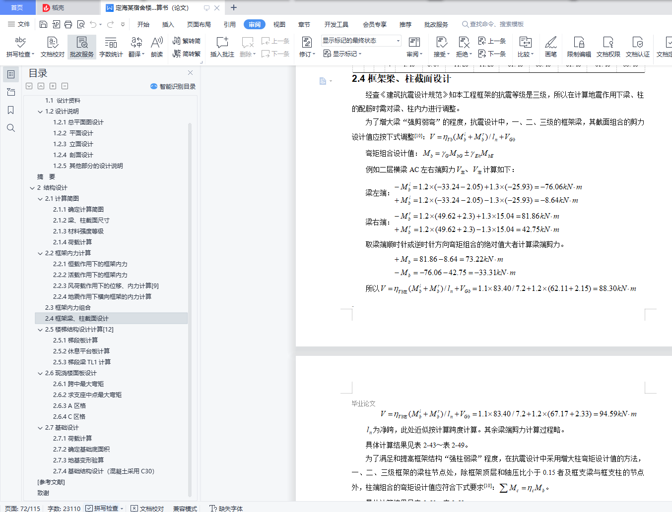 2.4框架梁、柱截面设计