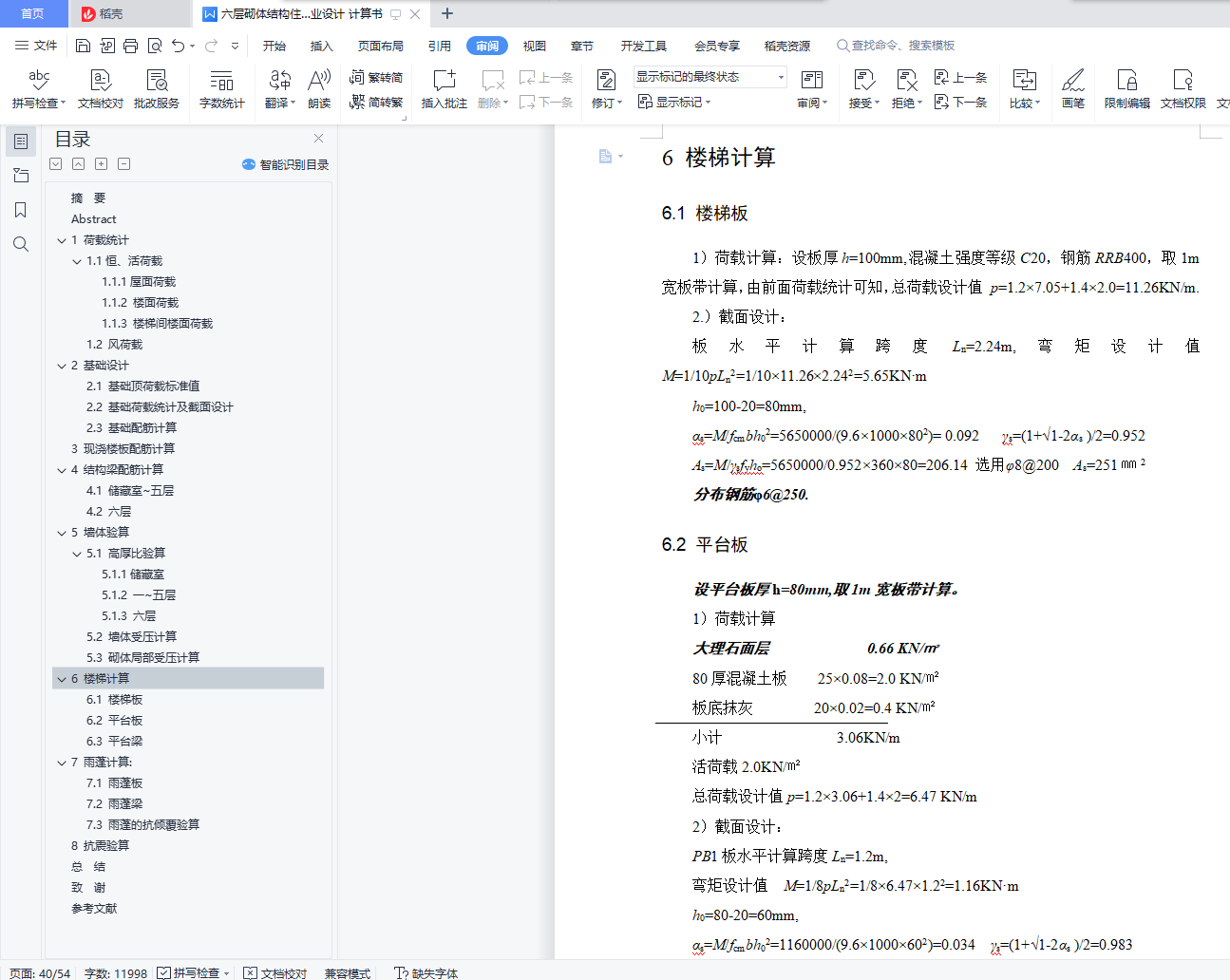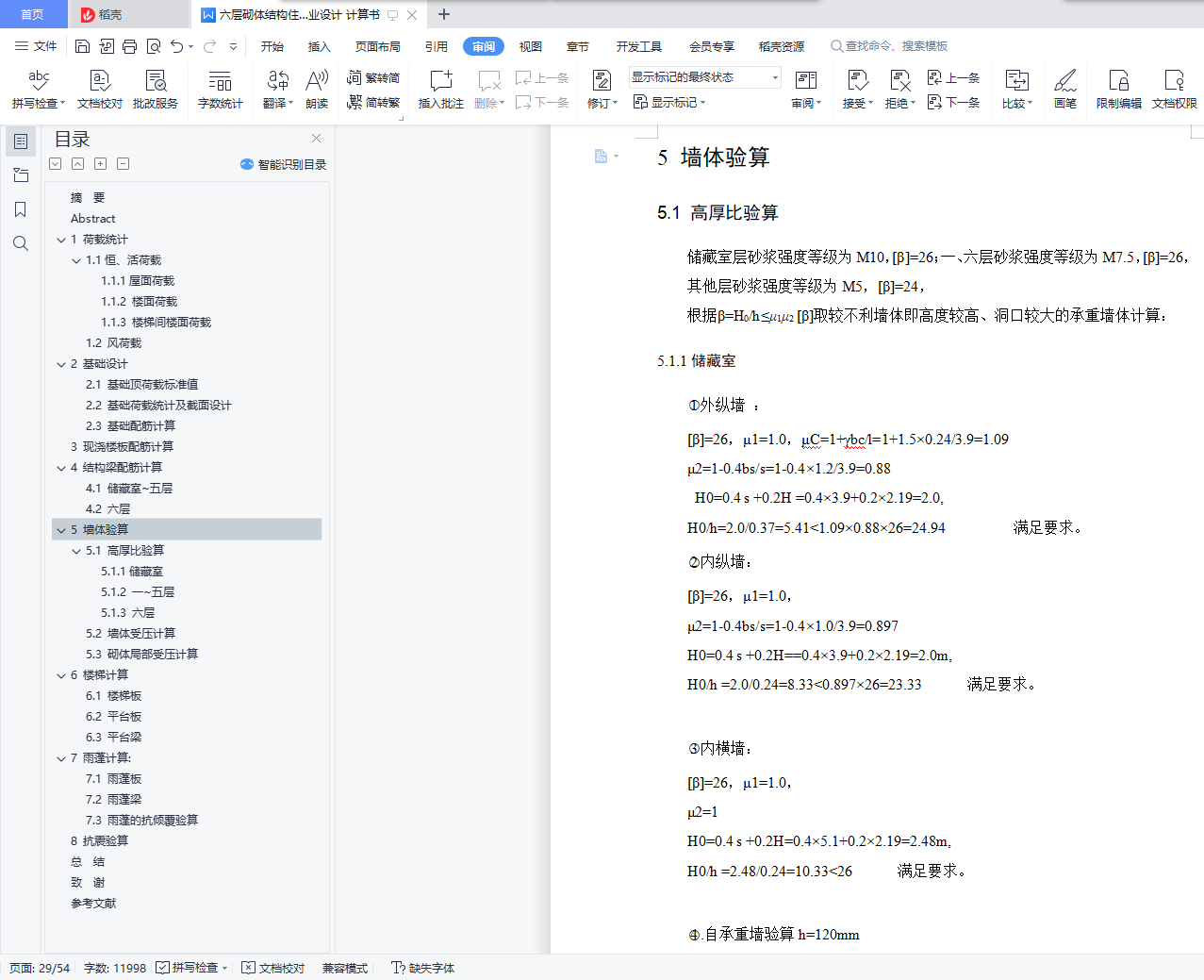 六层砌体结构住宅楼毕业设计 计算书+建筑结构cad图纸