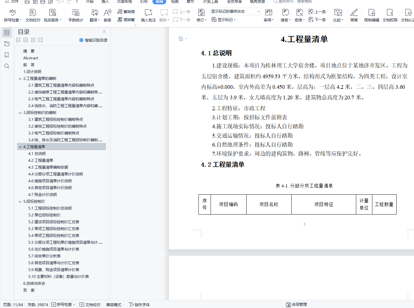 桂林理工大学宿舍楼工程工程量清单及招标控制价的编制 说明书(论文)+CAD图纸