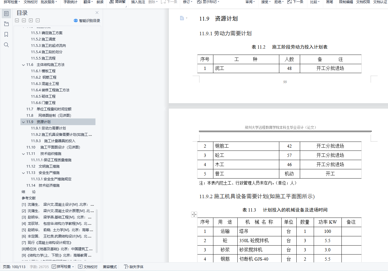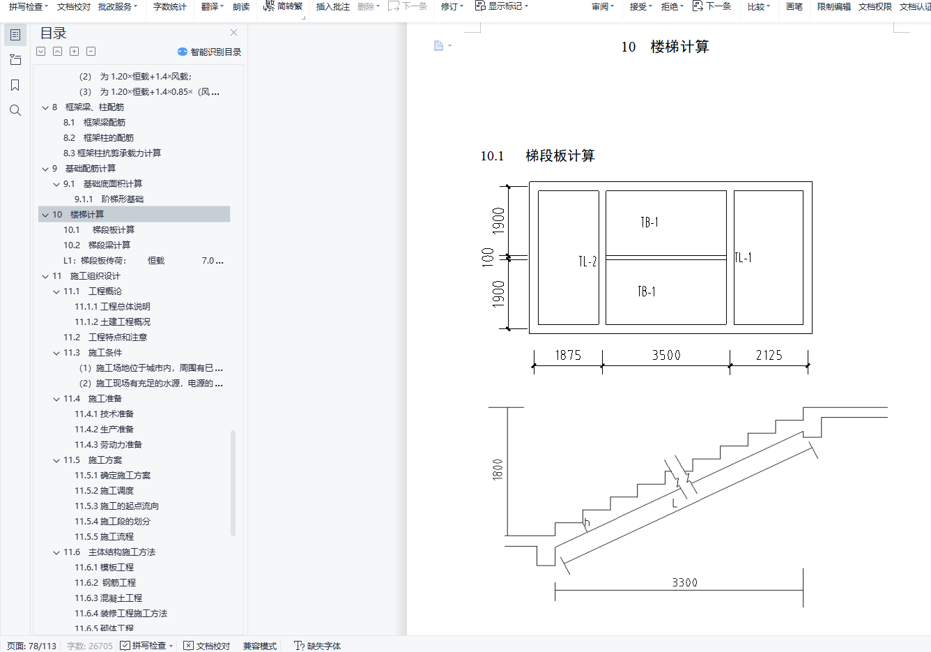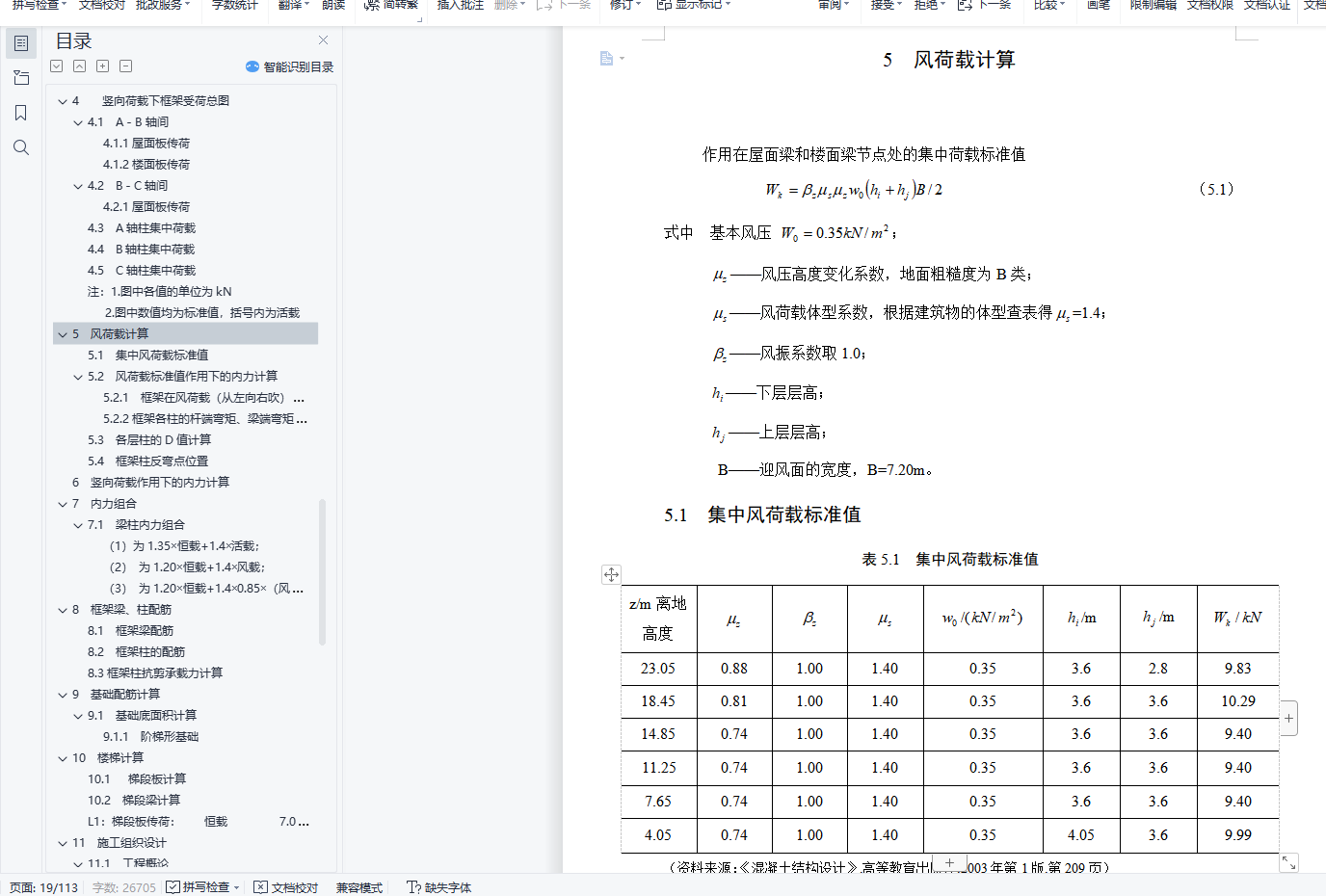 摘 要金奕华建设单位办公楼位于郑州市高新技术产业开发区文化大道北。严格按照《办公建筑设计规范》(JGJ67-2006)、《建筑设计防火规范》(GB50016-2006)、《建筑结构荷载规范》(GB50009-2001)、《混凝土结构设计规范》(GB50010-2002)、《建筑地基基础设计规范》(GB50007-2002)、《抗震设计规范》(GB50011-2001)等国家现行规范对本办公楼进行建筑设计,结构设计。施工组织设计中的时间定额按照河南省99定额套用。本设计先对建筑的平面、立面进行设计,随后对建筑的基础、梁、板、柱进行配筋计算,最后进行施工组织设计和施工场地平面设计。整个设计都符合国家现行规范要求。设计过程中采用天正7.0和AutoCAD2014软件进行建筑设计,采用算易结构软件计算基础配筋,用广厦10.0建筑结构CAD软件计算整个工程的梁板柱配筋,用梦龙2006软件绘出施工网络图。设计具有一定的可靠性、安全性、创造性。本次项目现浇钢筋混凝土框架结构,计算书包含建筑结构选型,建筑荷载计算,框架配筋计算,基础计算,楼梯计算。其中建筑荷载计算过程中垂直荷载采用迭代法计算,水平荷载采用D值法计算,通过荷载组合确定一榀框架结构的控制内力,最后完成一榀框架的配筋,并手绘了一榀框架配筋图。关键词: 建筑设计,结构设计,框架,配筋,施工ABSTRACTThe commercial office building is located in the north of Cultural Avenue of Zhoukou High-tech Industrial Development Zone.Building design and structure design in strict accordance with the current national specifications such as Code for the Design of Office Buildings (JGJ67-2006), Code for Fire Prevention of Buildings (GB50016-2006), Code for Loading (GB50009-2001), Code for the Design of Concrete Structures (GB50010-2002), Code for the Design of Building Foundation (GB50007-2002), and Seismic Design Code (GB50011-2001).The time quota in the construction organization design shall be applied according to the 99 quota in Henan Province.This design first designs the plane and facade of the building, then calculates the foundation, beams, boards, and columns, and finally conducts the construction organization design and construction site plane design.The whole design meets the current national specifications.During the design process, Tianzhu 7.0 and AutoCAD2014 software were used for architectural design, easy structural software was used to calculate basic reinforcement, beam and column reinforcement of the whole project were calculated with Guangxia 10.0 building structure CAD software, and the construction network drawing was drawn with Menglong 2006 software.The design has certain reliability, safety and creativity.The cast-in-place reinforced concrete frame structure of this project includes building structure selection, building load calculation, frame reinforcement calculation, foundation calculation, and stair calculation.Among them, during the building load calculation process, the vertical load is calculated by iterative method, and the horizontal load is calculated by D value method. The control internal force of a frame structure is determined through the load combination, and finally the reinforcement of a frame was completed, and a frame reinforcement map is hand-drawn.Keywords : architectural design, structural design, frame, reinforcement, construction目 录1 绪论 11.1 设计目的和意义 11.2 工程概况 11.3 设计规范、规程 11.4 材料选用 12 结构布置及梁柱截面估算 22.1 结构布置 22.2 计算框架梁、柱截面尺寸估算 32.3 梁柱线刚度计算及框架计算简图确定 32.3.1 梁柱线刚度计算 32.3.2 计算简图 43 荷载计算 63.1 恒载标准值计算 63.2 活荷载标准值计算 74 竖向荷载下框架受荷总图 84.1 A-B轴间 84.1.1 屋面板传荷 84.1.2 楼面板传荷 84.2 B-C轴间 84.2.1 屋面板传荷 84.3 A轴柱集中荷载 94.4 B轴柱集中荷载 104.5 C轴柱集中荷载 105 风荷载计算 135.1 集中风荷载标准值 135.2 风荷载标准值作用下的内力计算 135.2.1 框架在风荷载(从左向右吹)下的内力用D值法进行计算 135.2.2 框架各柱的杆端弯矩、梁端弯矩计算 145.3 各层柱的D值计算 145.4 框架柱反弯点位置 156 竖向荷载作用下的内力计算 187 内力组合 377.1 梁柱内力组合 378 框架梁、柱配筋 538.1 框架梁配筋 538.2 框架柱的配筋 558.3 框架柱抗剪承载力计算 589 基础配筋计算 599.1 基础底面积计算 599.1.1 阶梯形基础 5910 楼梯计算 6510.1 梯段板计算 6510.2 梯段梁计算 6611 施工组织设计 6711.1 工程概论 6711.1.1 工程总体说明 6711.1.2 土建工程概况 6711.2 工程特点和注意 6711.3 施工条件 6711.4 施工准备 6811.4.1 技术准备 6811.4.2 生产准备 6811.4.3 劳动力准备 6811.5 施工方案 6911.5.1 确定施工方案 6911.5.2 施工的起点流向 6911.5.3 施工段的划分 6911.5.4 施工流程 7011.6 主体结构施工方法 7111.6.1 模板工程 7111.6.2 钢筋工程 7211.6.3 混凝土工程 7311.6.4 装修工程施工方法 7411.6.5 砌体工程 7511.6.6 门窗工程 7611.7 单位工程持续时间 7711.8 网络图绘制 8311.9 资源计划 8411.9.1 劳动力需要计划 8411.9.2 施工机具设备需要计划 8411.9.3 施工计量器具的投入 8411.10 施工平面图设计 8511.11 技术组织措施 8511.11.1 保证工程质量措施 8511.12 文明施工措施 8711.13 安全生产措施 8811.13.1 安全生产措施规定 8811.14 技术经济措施 91结论 92参考文献 93致谢 94