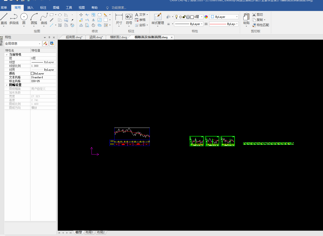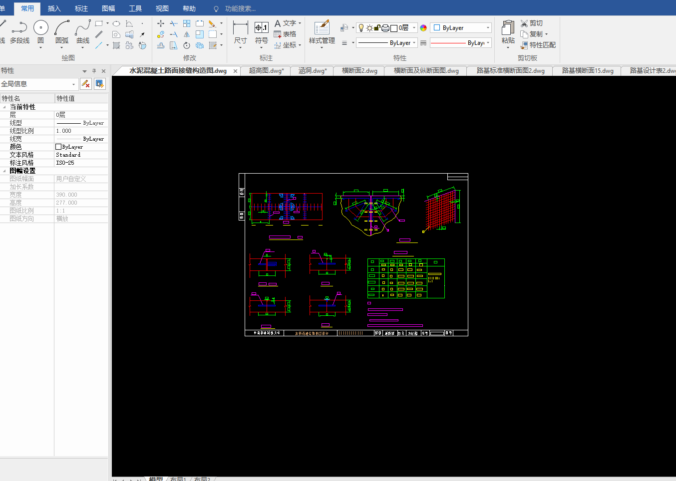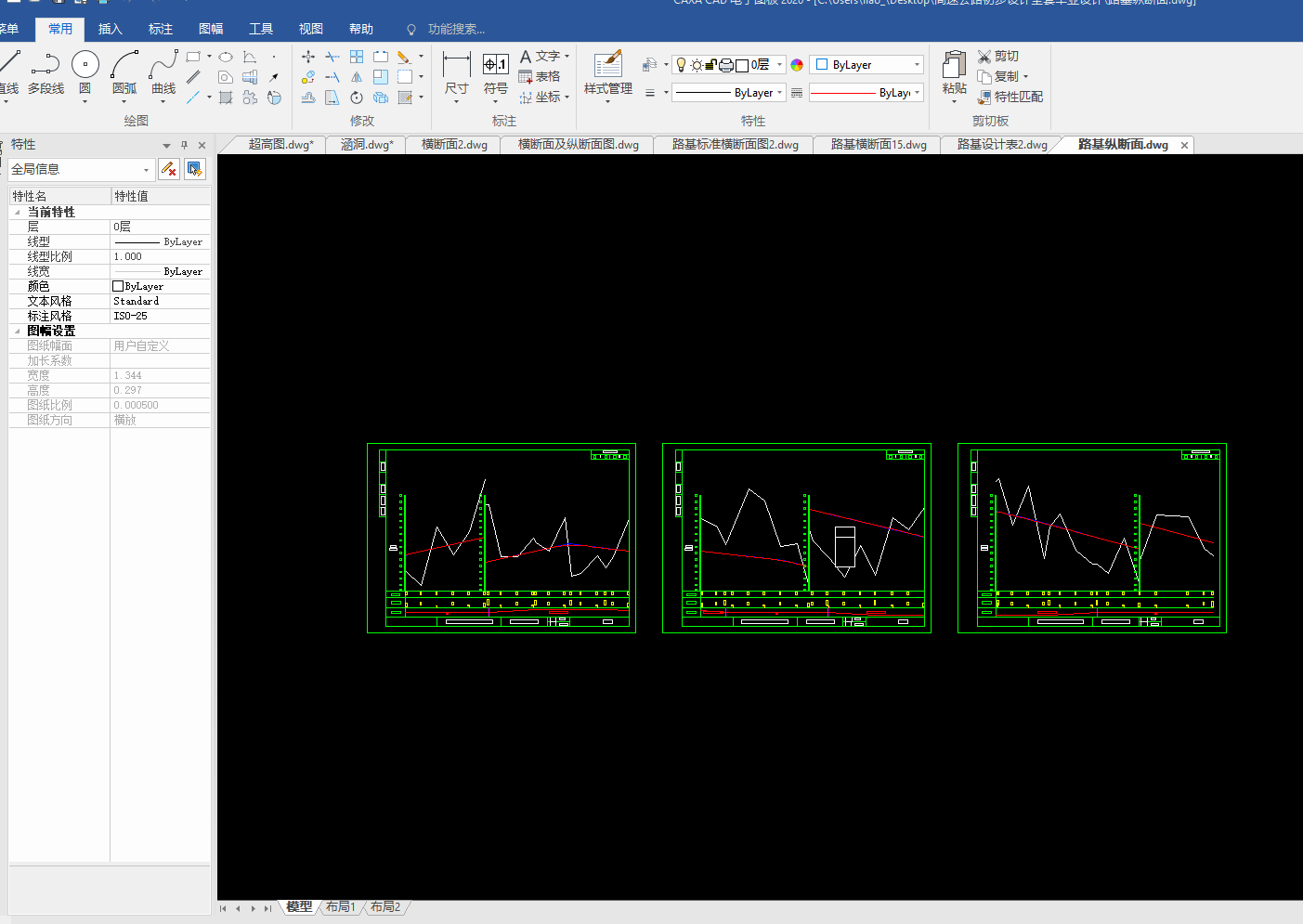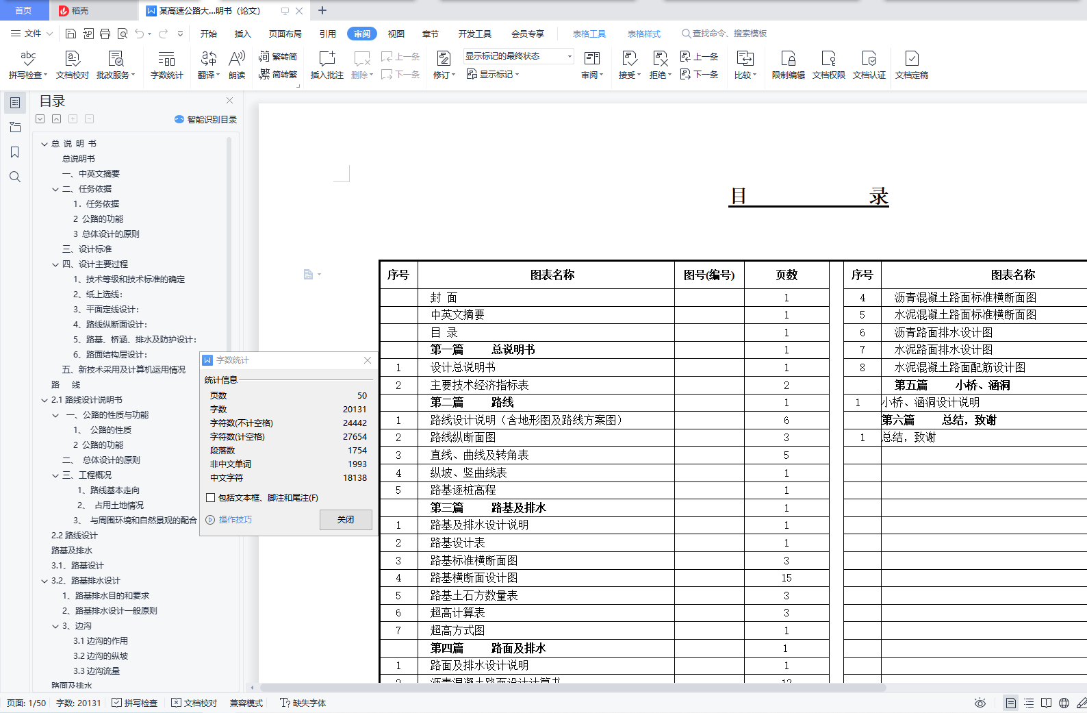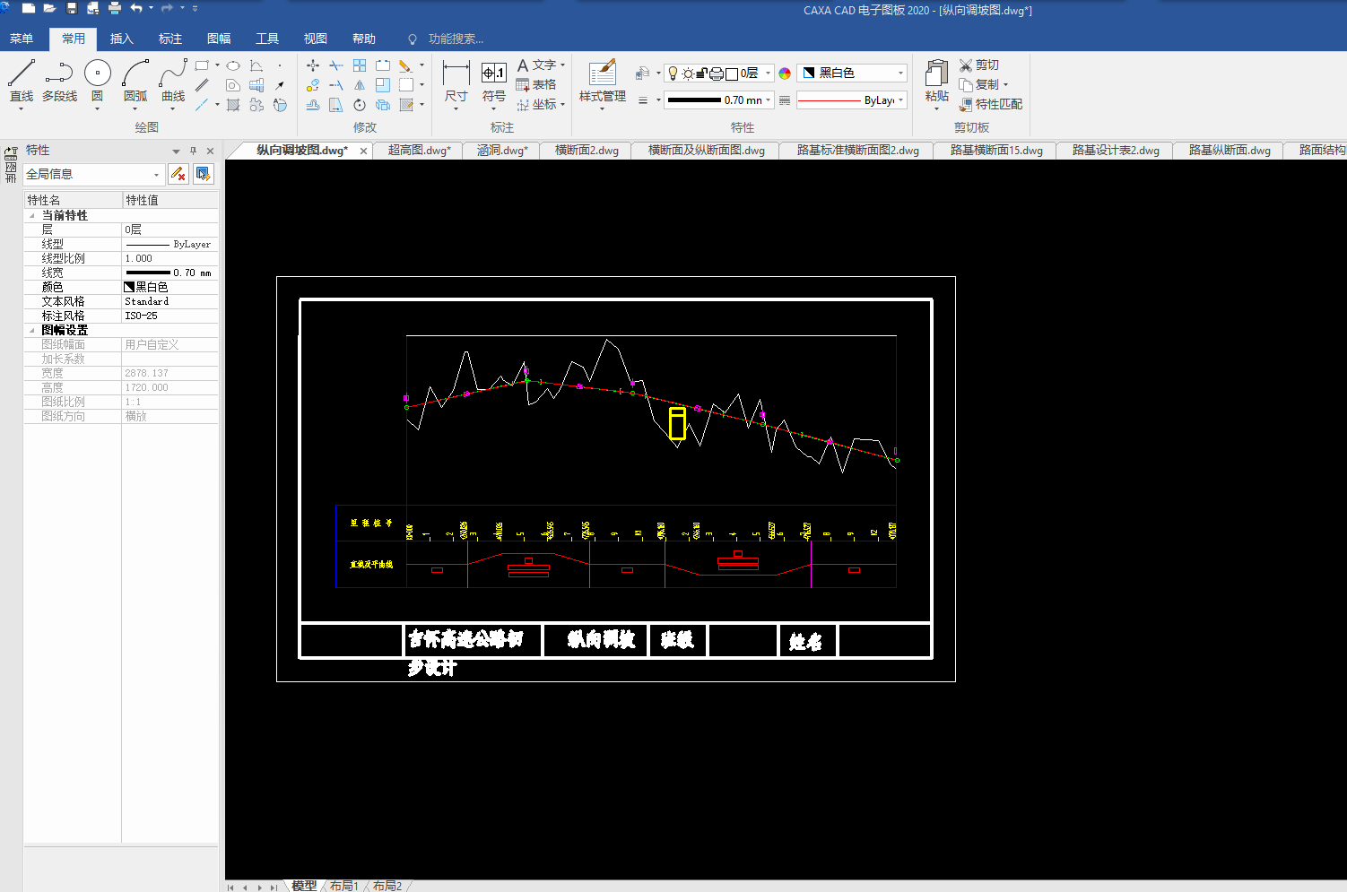 目录总 说 明 书 2总说明书 3一、中英文摘要 3二、任务依据 41. 任务依据 52 公路的功能 53 总体设计的原则 5三、设计标准 5四、设计主要过程 61、 技术等级和技术标准的确定 62、 纸上选线: 63、 平面定线设计: 64、 路线纵断面设计: 65、 路基、桥涵、排水及防护设计: 66、 路面结构层设计: 7五、新技术采用及计算机运用情况 7路 线 82.1路线设计说明书 9一、公路的性质与功能 91、 公路的性质 92 公路的功能 9二、 总体设计的原则 9三、工程概况 91、路线基本走向 92、 占用土地情况 93、 与周围环境和自然景观的配合 92.2路线设计 9路基及排水 143.1、路基设计 153.2、路基排水设计 151、路基排水目的和要求 152、路基排水设计一般原则 153、边沟 153.1边沟的作用 163.2边沟的纵坡 163.3边沟流量 16路面及排水 174.1 路面设计原则 184.1.1路面类型与结构方案设计 184.1.2路面建筑材料设计 184.1.3 路面结构设计 184.2 路面设计步骤 184.3设计内容 184.3.1沥青混凝土路面 184.3.2 水泥混凝土路面 194.3.3设计基本资料 19基层材料设计参数表4-3 204.4 沥青混凝土路面结构设计 204.5水泥道路路面结构设计 34小桥、涵洞 46总结、致谢 49设计总结 51致 谢 51【参考文献】 51交通部部颁标准和规范 51教材 51参考书 51总说明书一、中英文摘要【摘 要】: 本次毕业设计的主要任务是道路初步设计。本次设计在分析地形的基础上,做了路线设计,包括平面定线与比选、纵断面及横断面的设计;在路线设计的基础上做了路基和路面的初步设计,路基设计中主要进行了排水和边坡的设计,路面则选择了沥青混凝土路面和水泥混凝土路面两种方案,另外在每种方案设计的同时也选取了两种不同的材料类型进行比选和推荐。【关键词】:道路初步设计 路线设计 路基和路面初步设计 沥青混凝土路面水泥混凝土路面【Abstract】:The main task of the graduation is the preliminary design of road, including flat-alignment with the selection, and cross-sectional profile of the design of the road design done on the basis of the road embankment and the preliminary design, design of the main embankment A drainage and slope design, was chosen the road of asphalt pavement and cement concrete pavement two programmes, and in each design has also selected two different types of materials selection and recommendation【Key words】:Preliminary design of road Route Design Roadbed and preliminary design of the road Asphalt concrete pavement Concrete Pavement