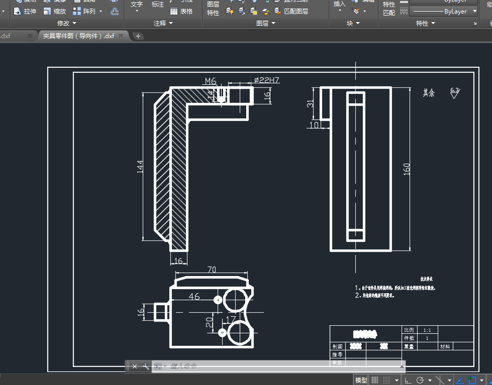 2. 由于存在两平面配合,由于零件的表面粗糙度为,因此需要与配合平面有一粗糙度的要求为