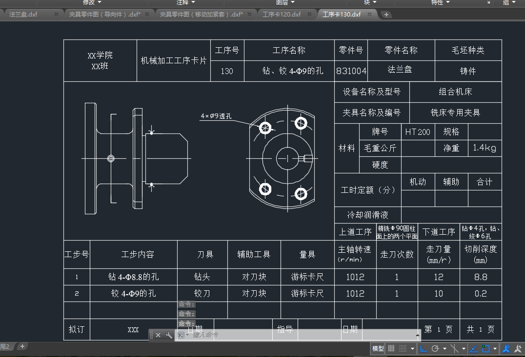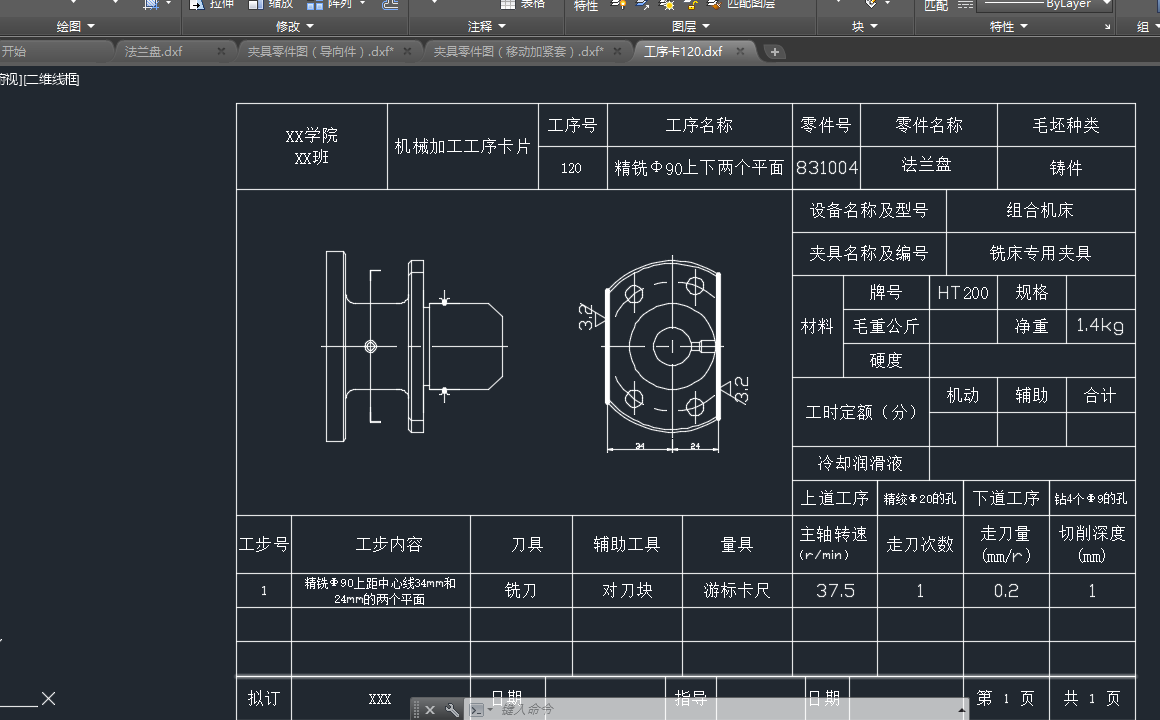 ”CA6140车床法兰盘”;零件材料为HT200,硬度190~210HB,毛皮重量1.4kg,生产类型大批量,铸造毛坯。