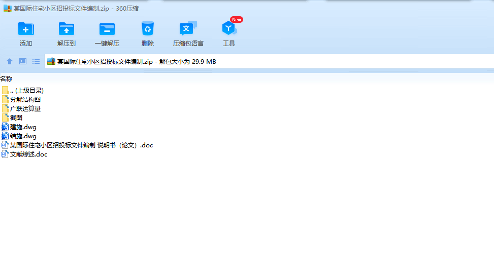 投标函部分、商务标部分、技术标部分、计算说明书及草稿、外文文献及翻译。