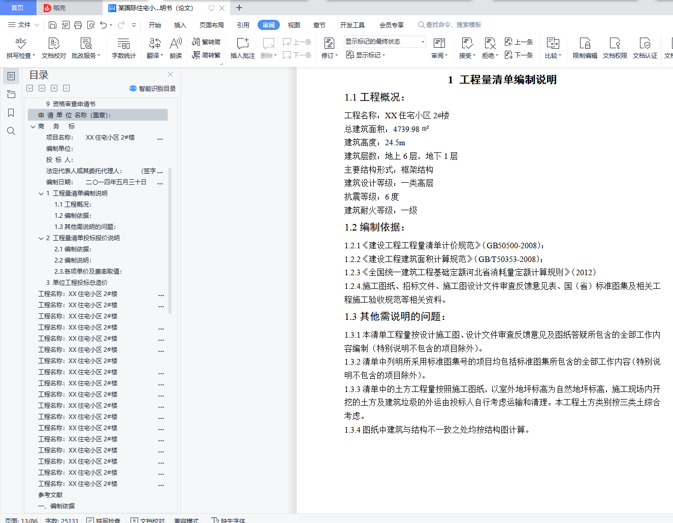 4、 本投标书商务标部分为电气安装部分投标报价,技术标部分参照整个施工项目。