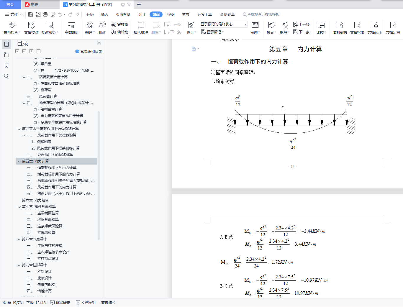 三、与地震作用相组合的重力荷载作用下的内力计算 18