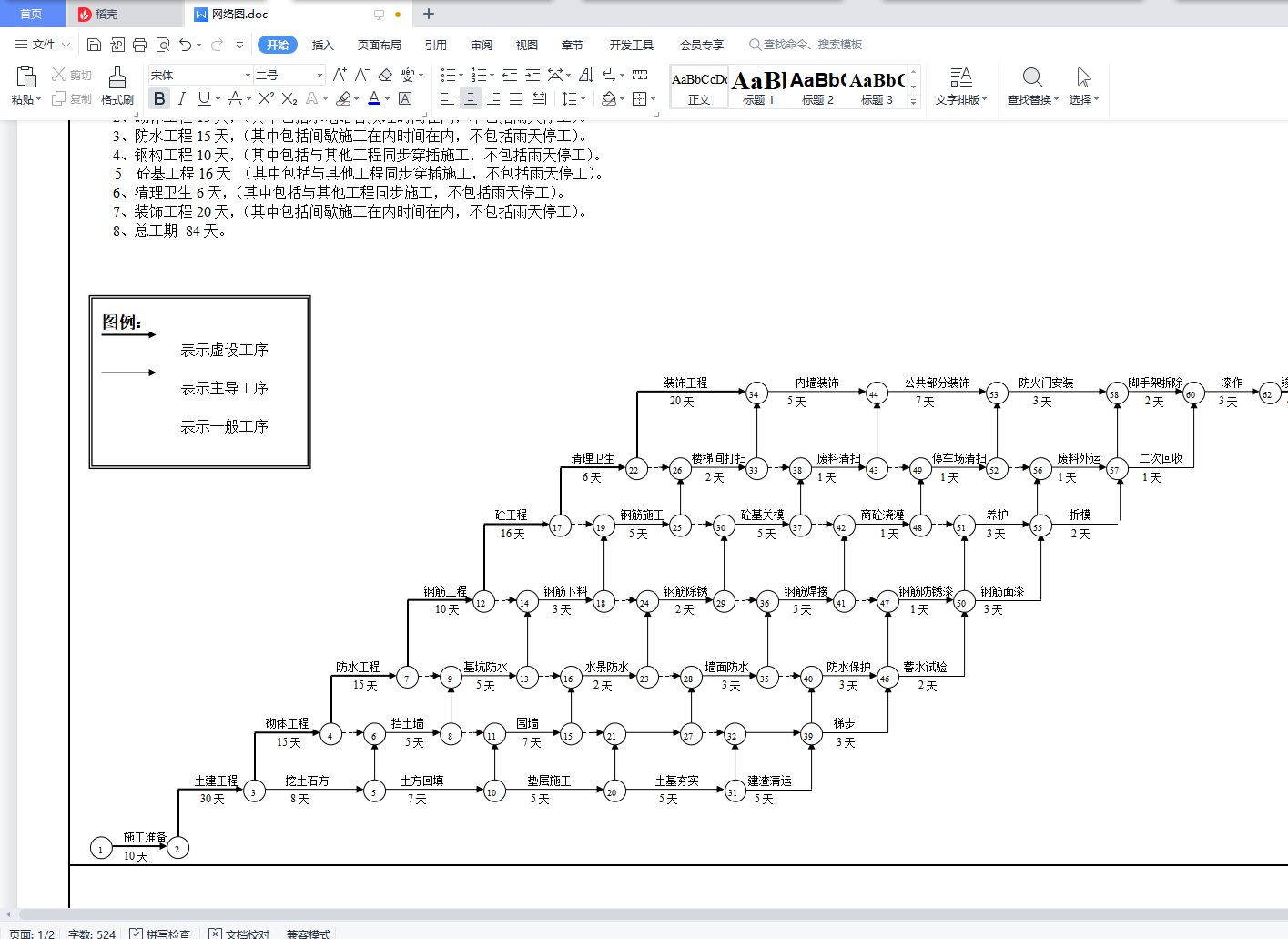本施工组织设计首先根据图纸资料明确商住楼的施工方案,其中主要包括土建工程、砌体工程、防水工程、钢筋工程、砼工程 、装饰工程、等各个分部分项工程,然后编制施工进度计划,进行流水施工并根据工程量和时间定额进行人工的安排,最后绘制出横道图、网络图。