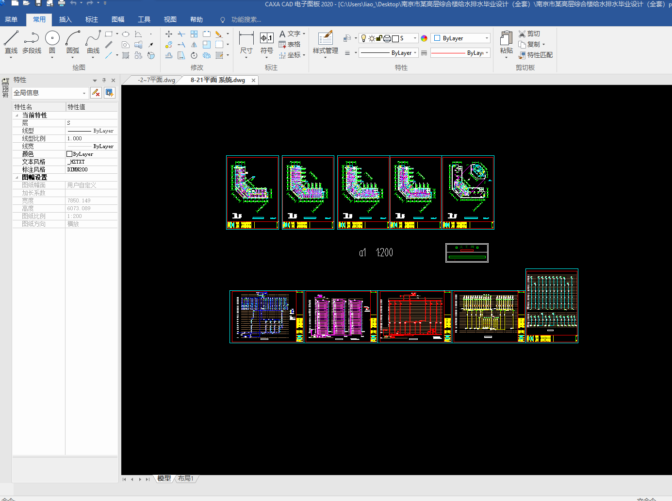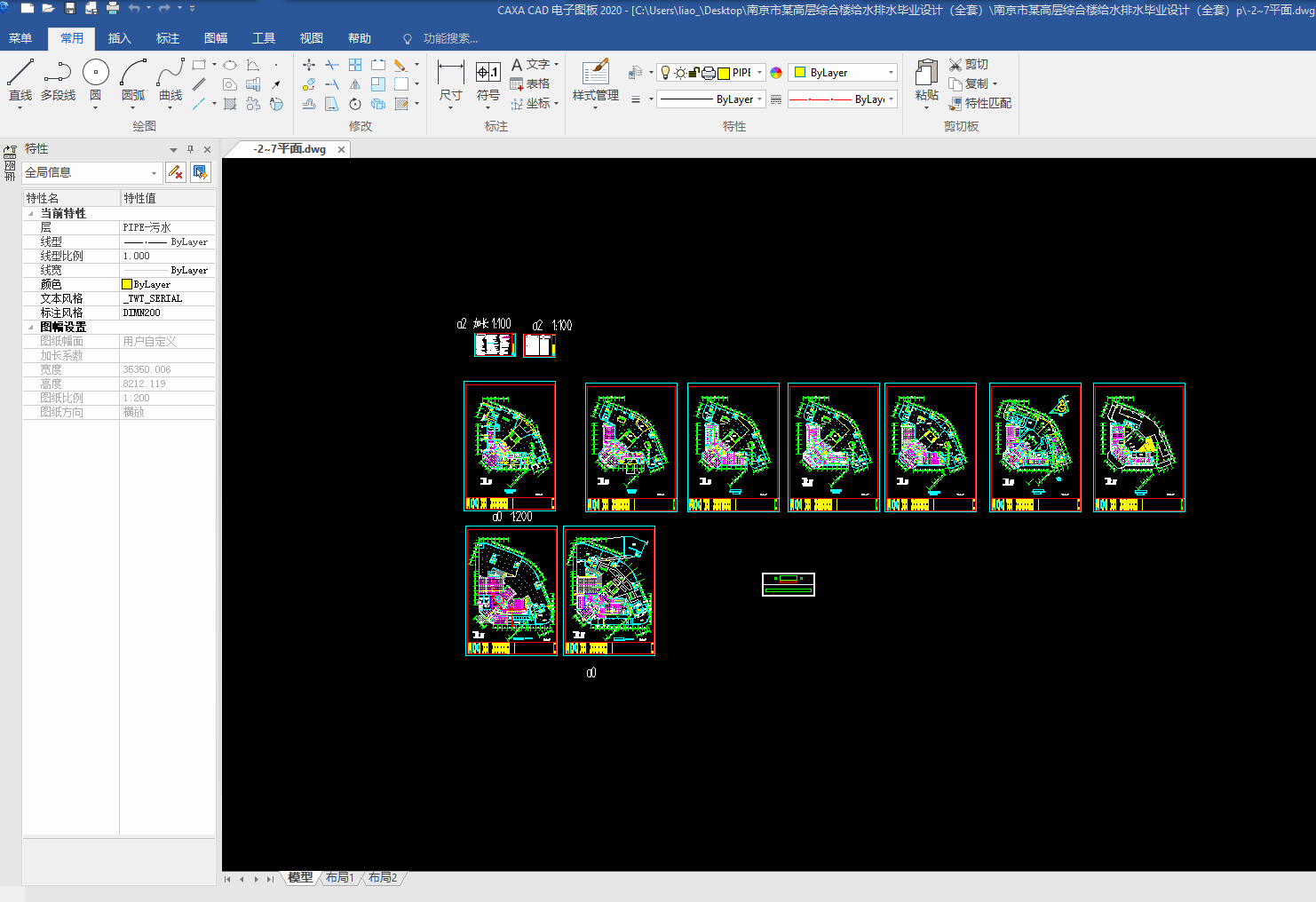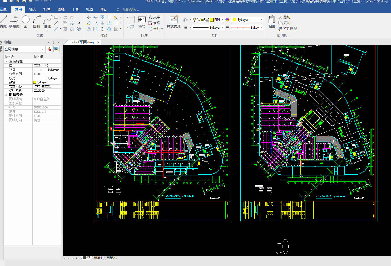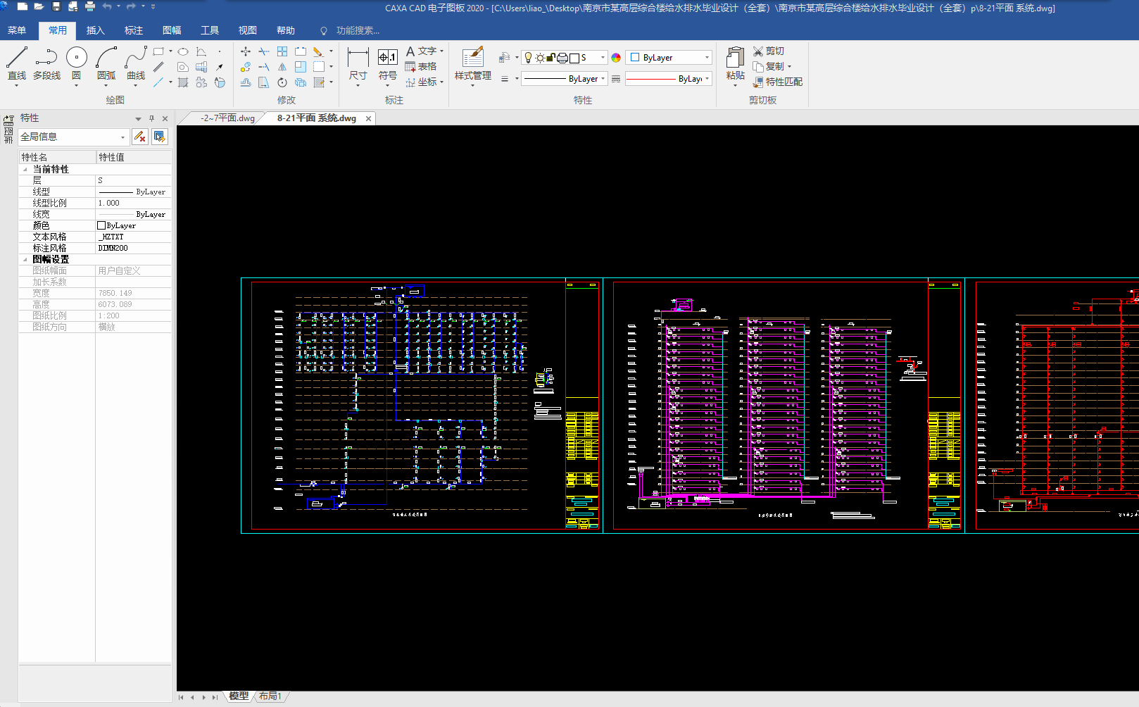 注:由于工作量比较大-2~7层自动喷淋系统只要求做部分防火分区,消火栓系统只做与8~21层平面对应的主楼部分。