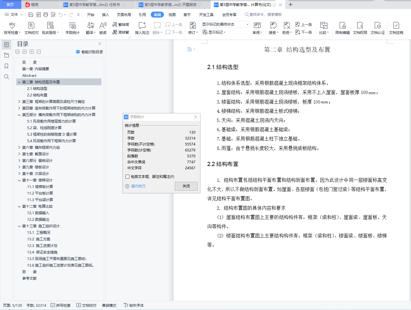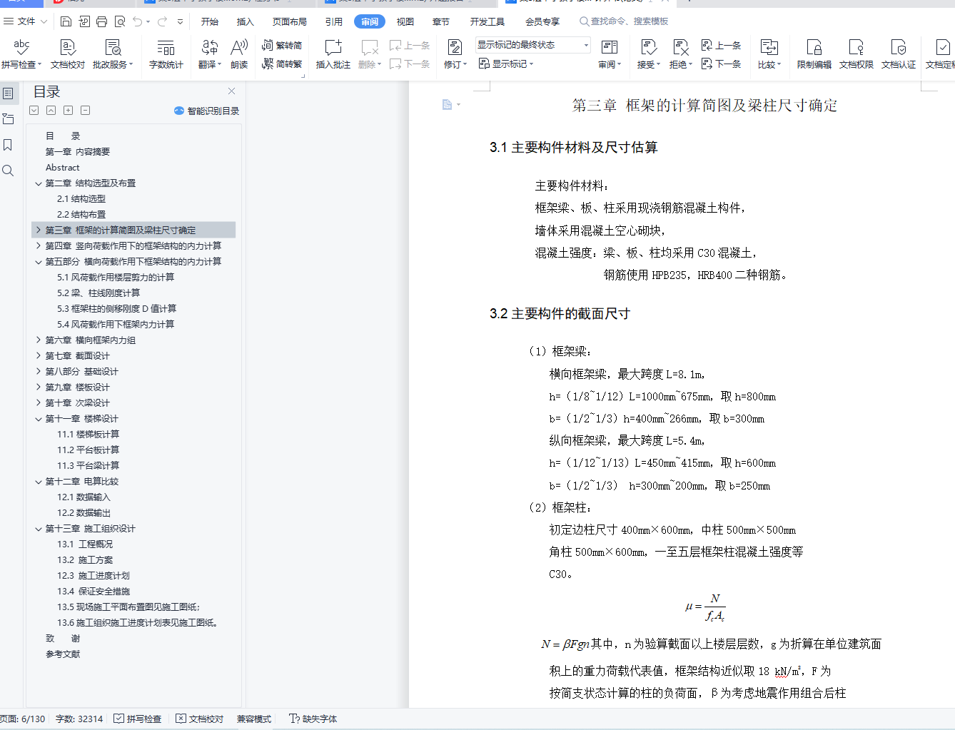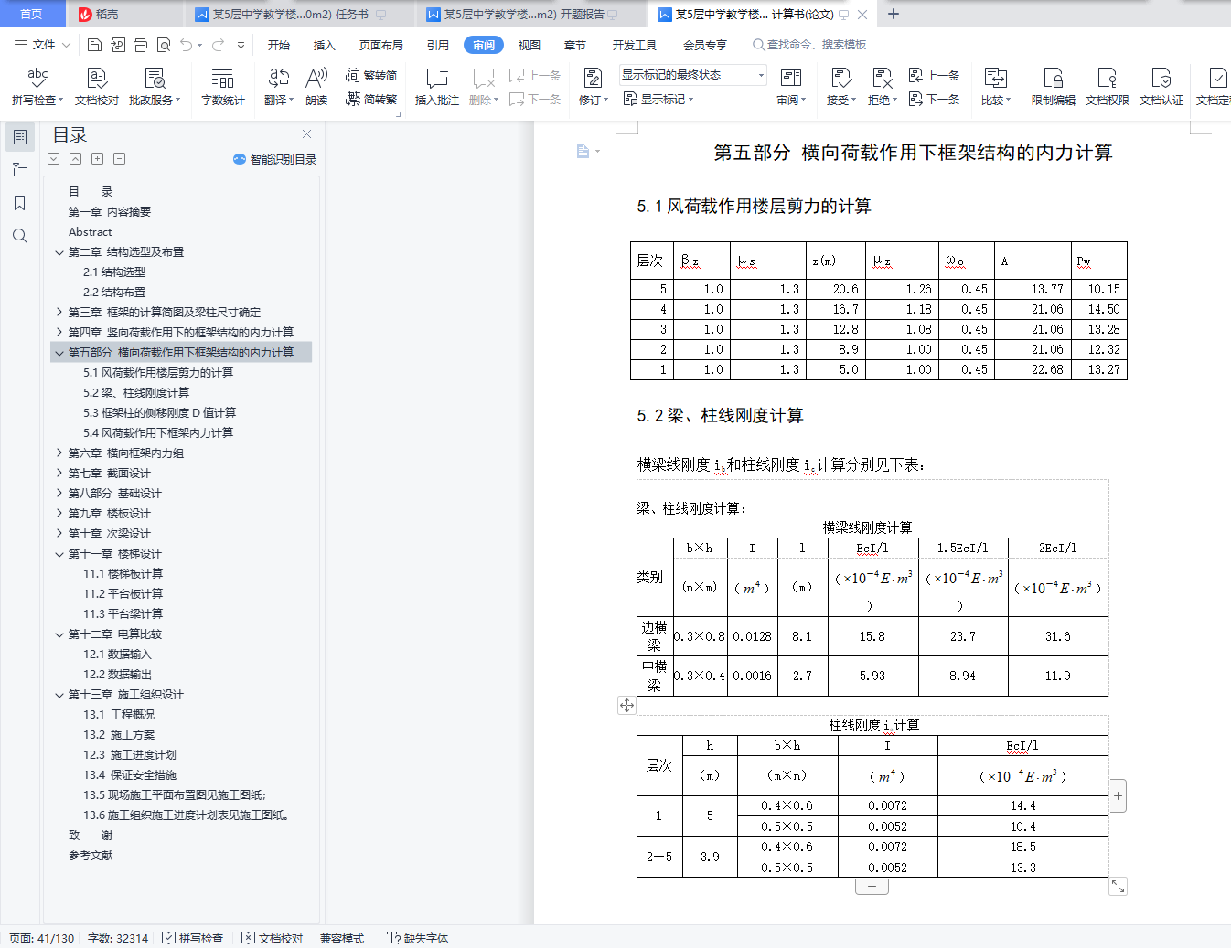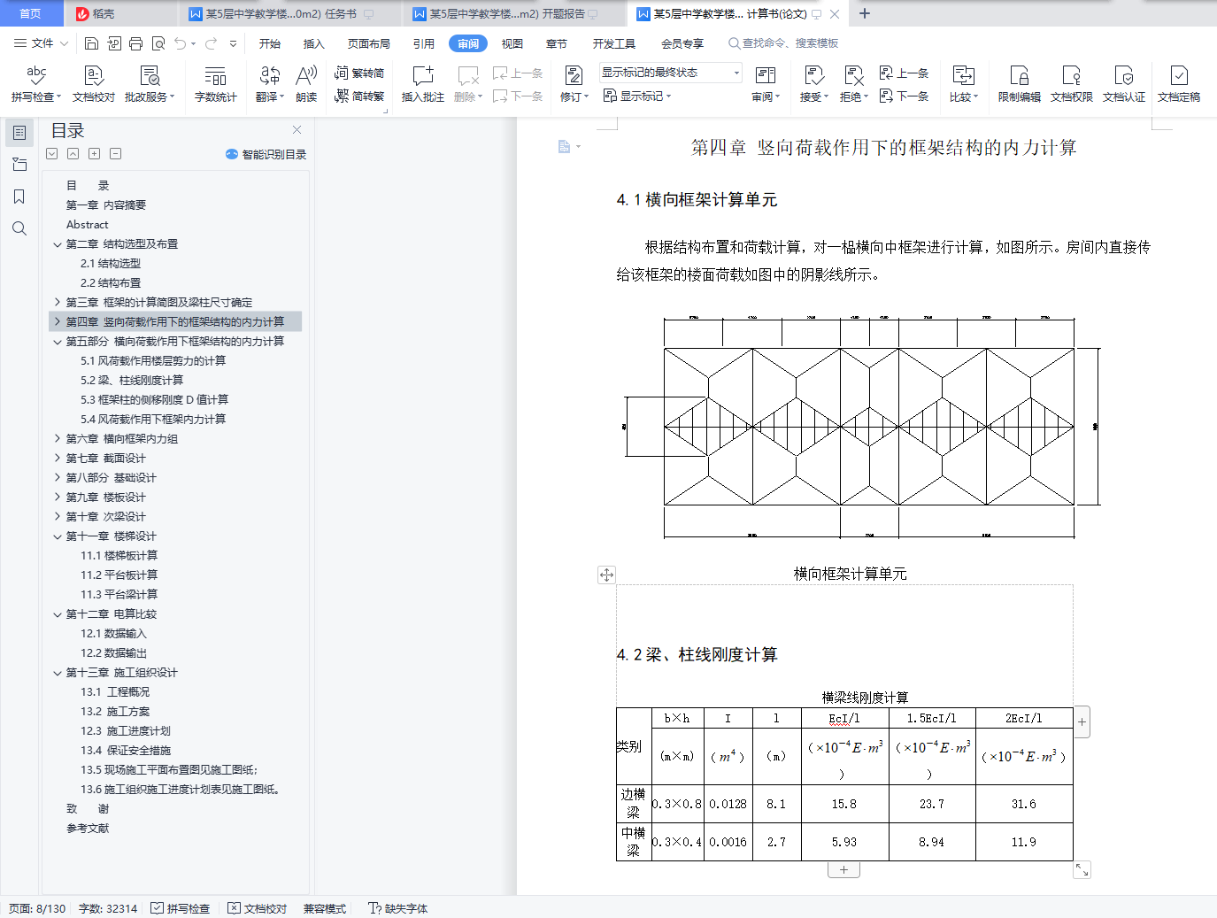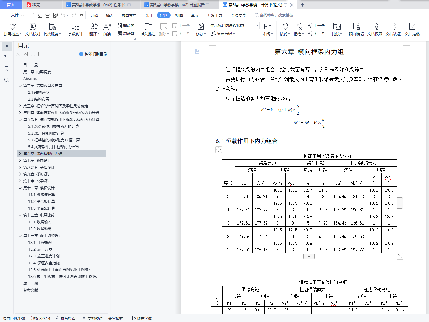 本设计主要进行了结构方案中横向框架A,B,C,D轴框架的设计。在确定框架布局之后,先计算了恒载,活载,风载的等效荷载以及各杆端的内力,然后用分层法进行内力分配,然后各层叠加,进而求出在水平荷载作用下的结构内力(弯矩、剪力、轴力)。接着内力组合找出最不利的一组或几组内力组合。 选取最安全的结果计算配筋并绘图。还进行地基设计。此外还进行了结构方案中的楼梯的设计。完成了平台板,梯段板,平台梁等构件的内力和配筋计算及施工图绘制。