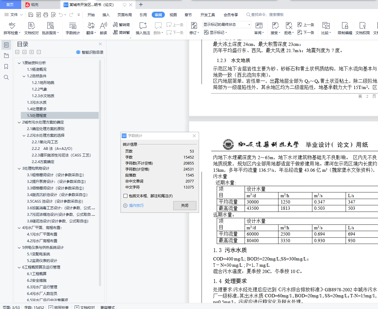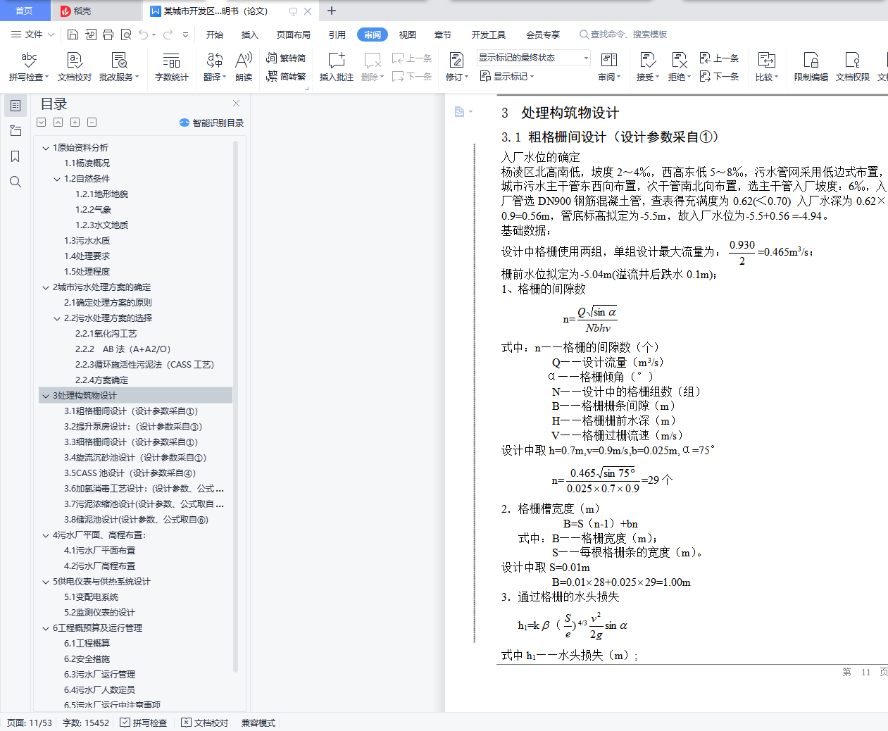 3.7 污泥浓缩池设计(设计参数、公式取自②)