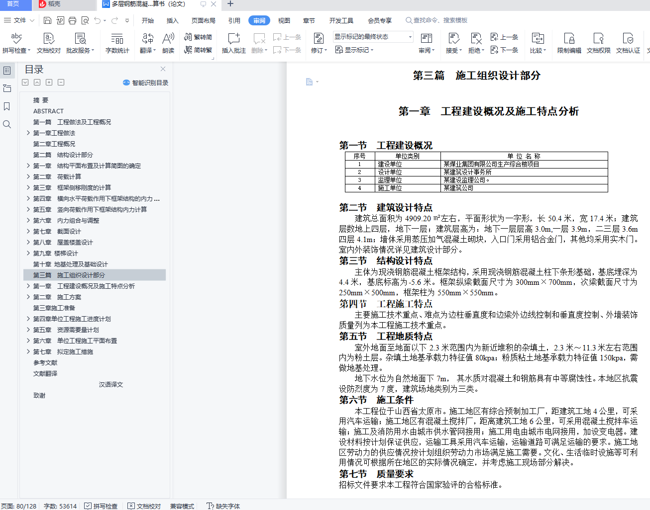 第一章 工程建设概况及施工特点分析