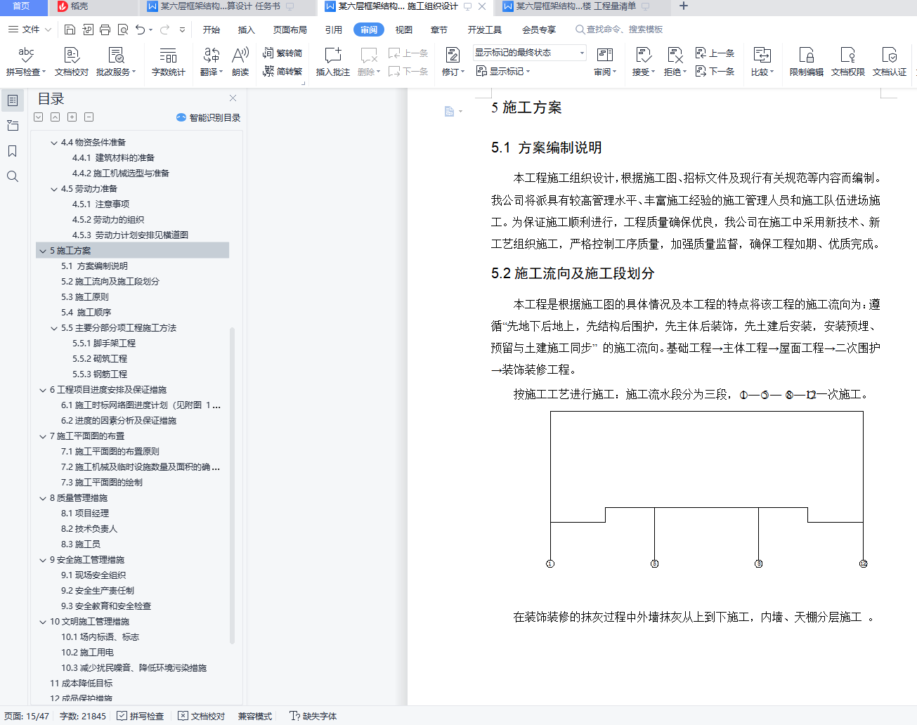 5.2施工流向及施工段划分