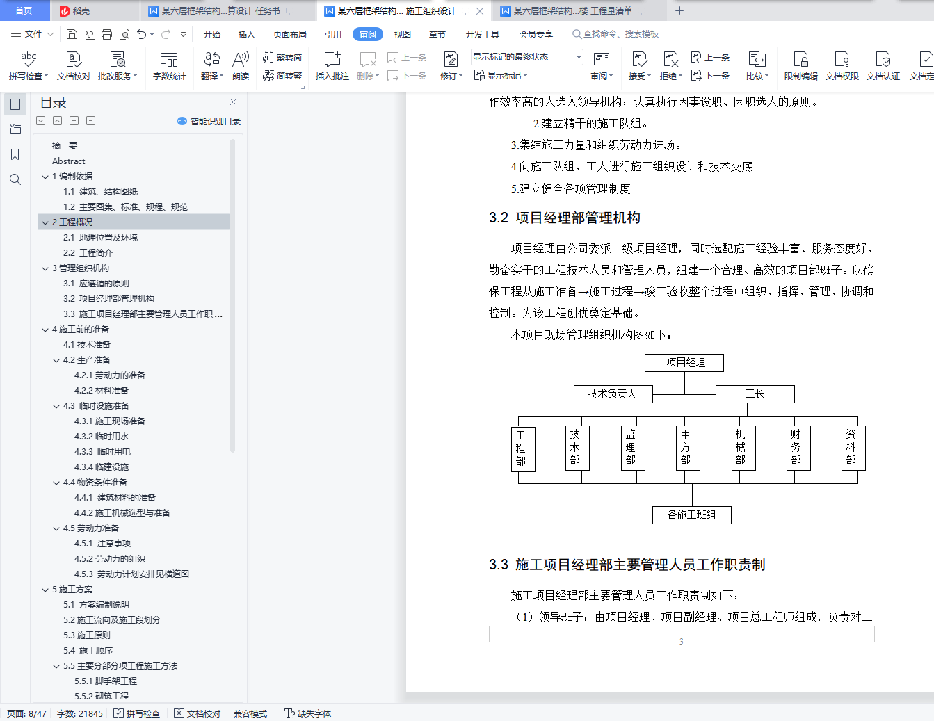3.2 项目经理部管理机构