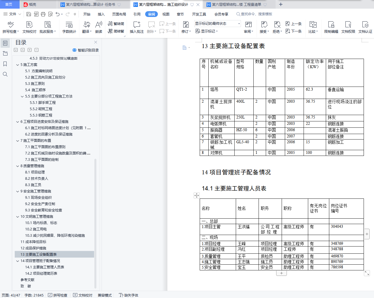 14项目管理班子配备情况