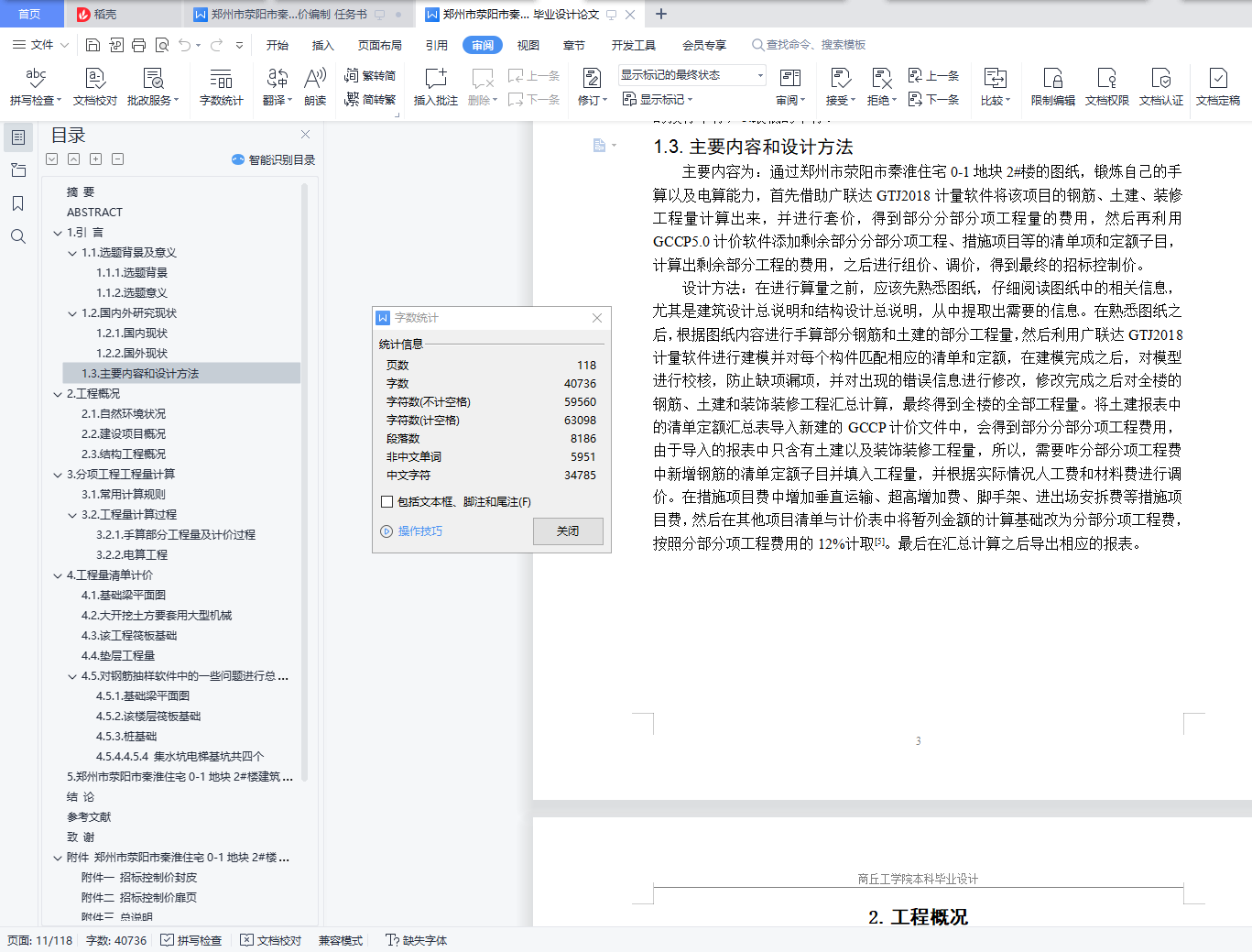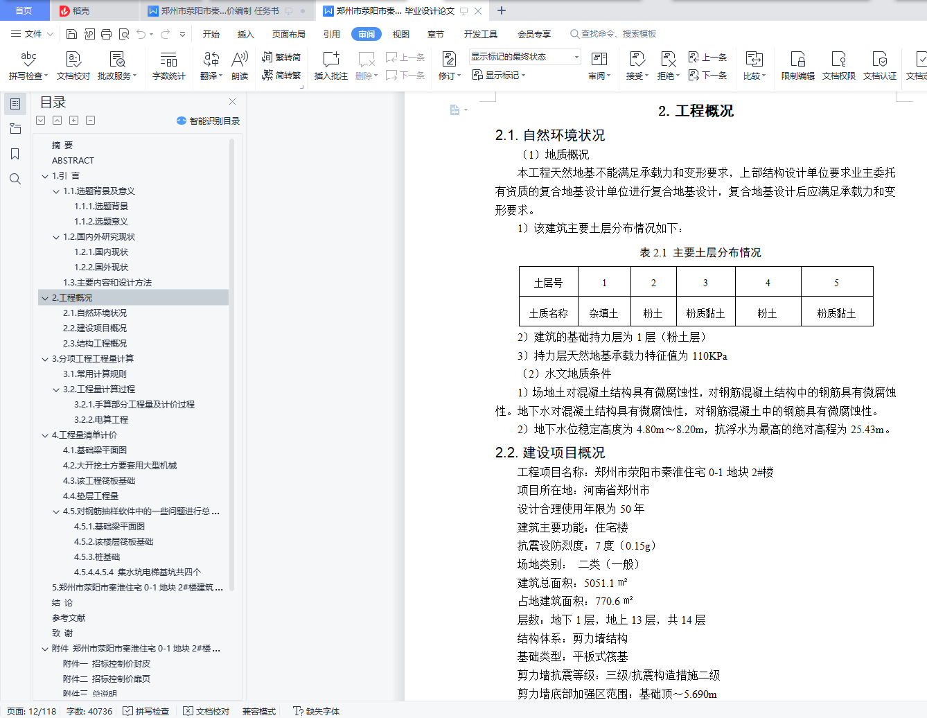 本次设计是以郑州市荥阳市秦淮住宅0-1地块2#楼的建筑施工图和结构施工图为基础编制的招标控制价,首先运用广联达算量软件对图纸进行建模处理并进行套价,汇总计算后得到详细的工程量清单,然后对工程进行部分结构进行手工算量;最终通过广联达算量软件得出该建筑的钢筋、土建、装饰装修以及部分措施项目费用。将通过广联达算量软件得到的清单定额汇总表导入广联达计价软件中之后,根据当期的市场信息价对人材机费用进行调价并计取措施项目费用等,最终得到该建筑的招标控制价。