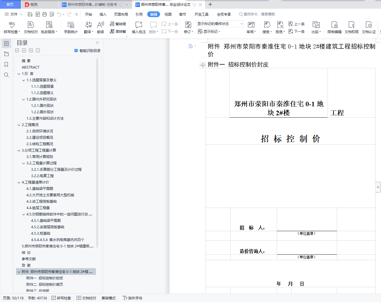 附件二 招标控制价扉页