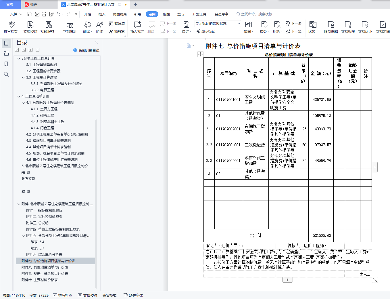 附件七 总价措施项目清单与计价表