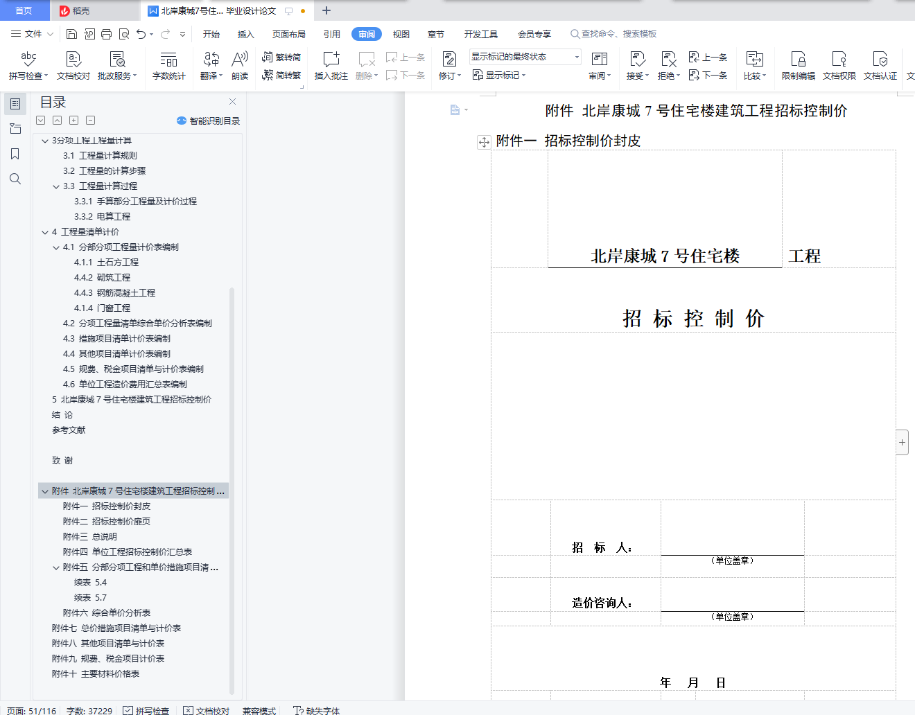 附件二 招标控制价扉页