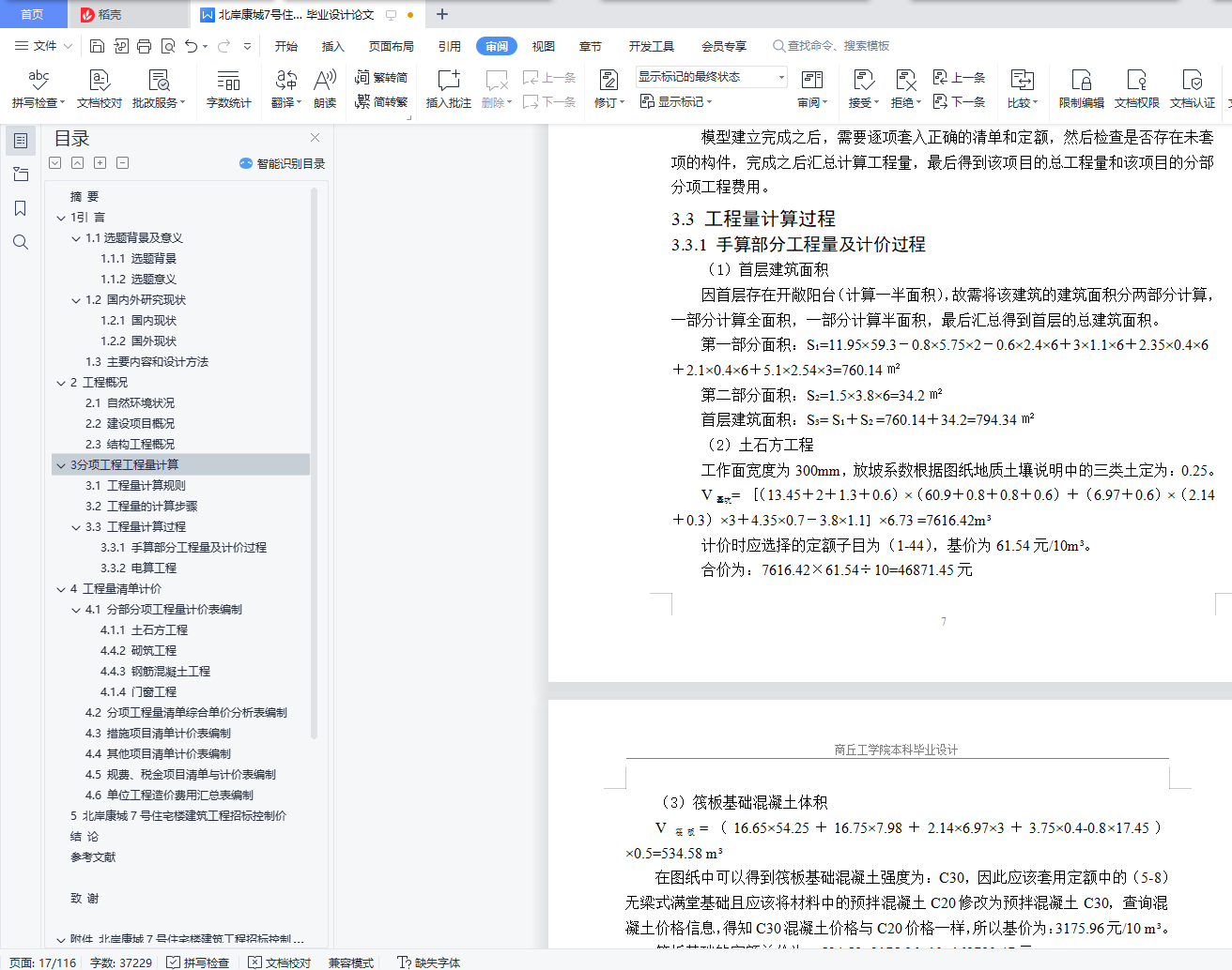 3.3.1 手算部分工程量及计价过程