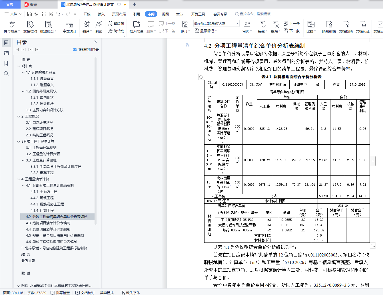 4.2 分项工程量清单综合单价分析表编制