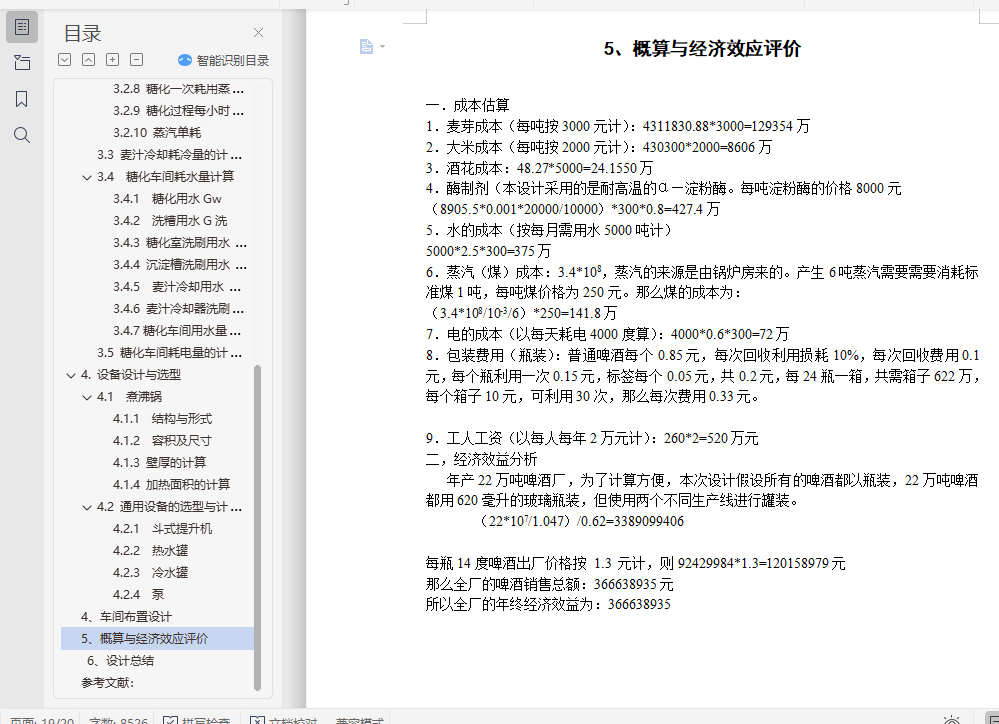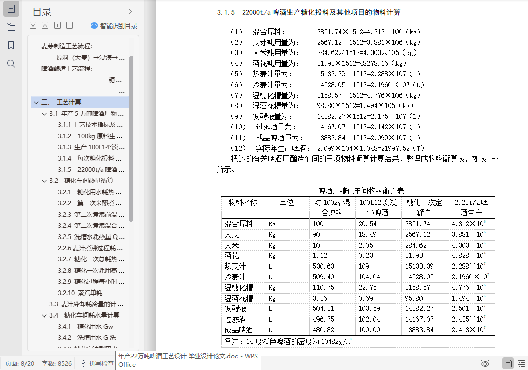 3.1.5 22000t/a啤酒生产糖化投料及其他项目的物料计算 5