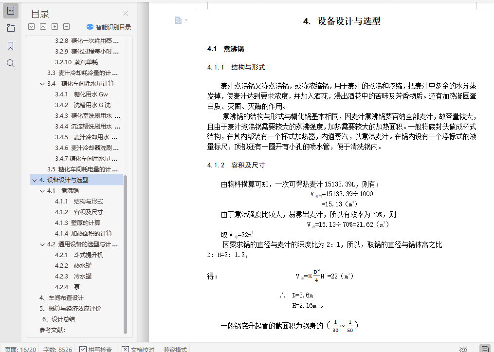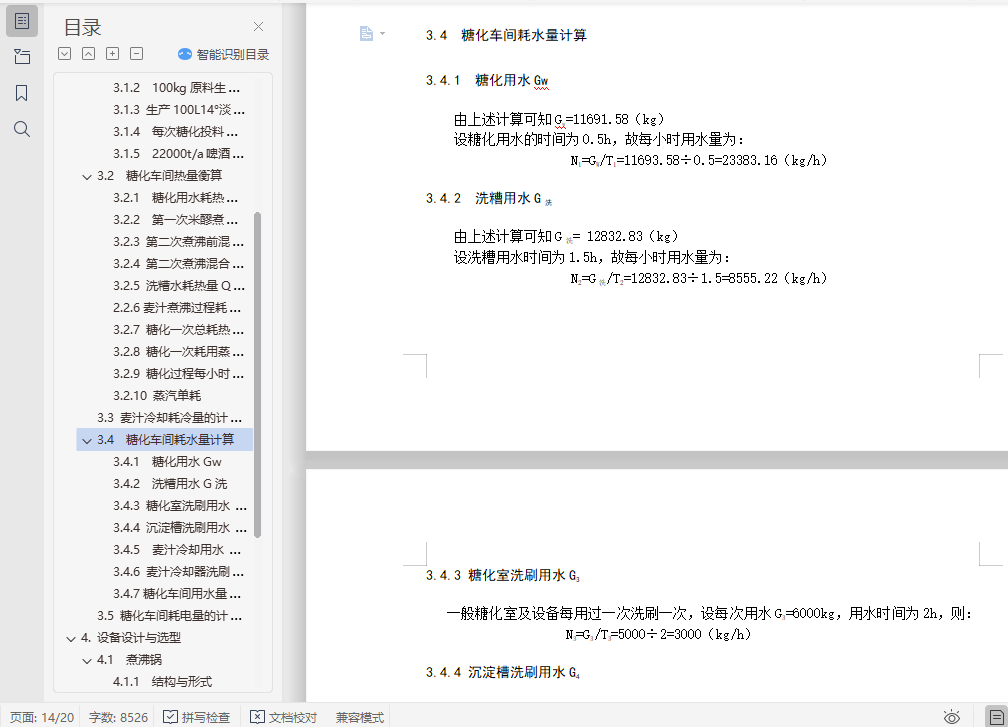 3.1.3 生产100L14°淡色啤酒的物料衡算 4