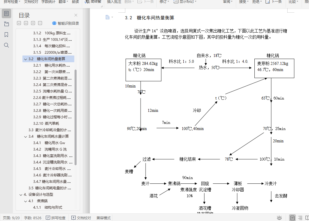 3.1.2 100kg原料生产14°淡色啤酒的物料衡算 3