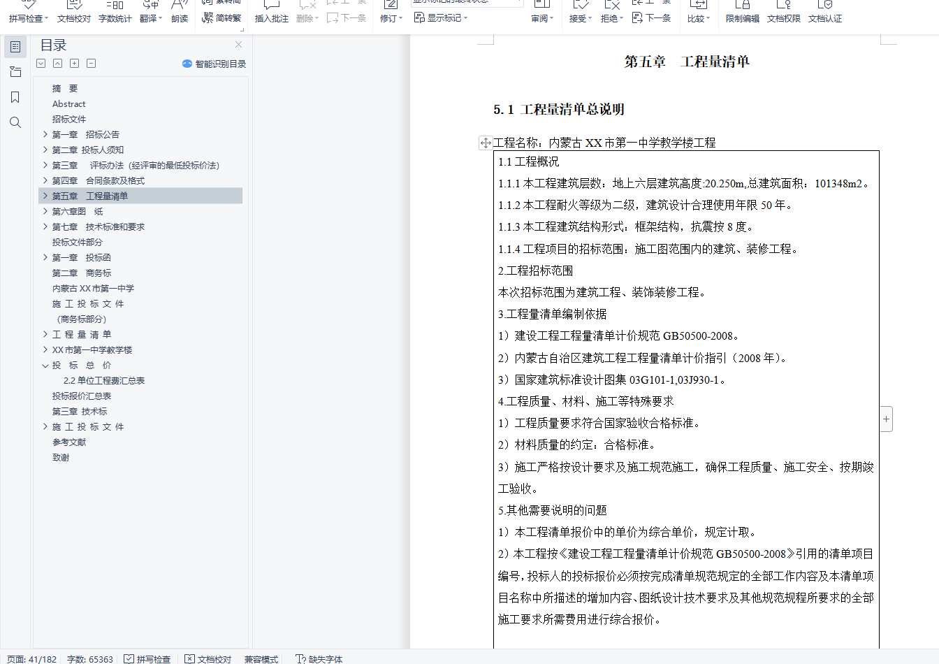 关键词: 技术标 工程量清单 施工组织