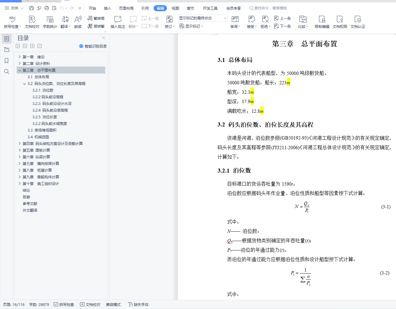 第一、根据当地实际情况对码头进行了结构选型,总平面做了布置,包括码头前沿水深、码头面高程、泊位长度等,此外,根据相关规范,对码头的各构件尺寸进行了估算。