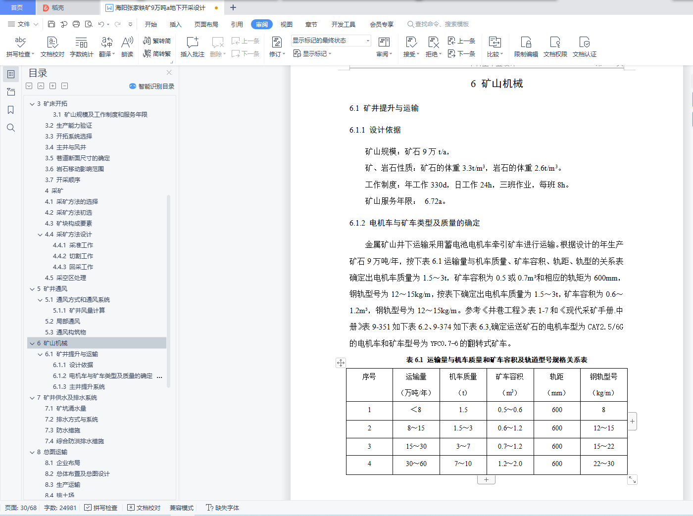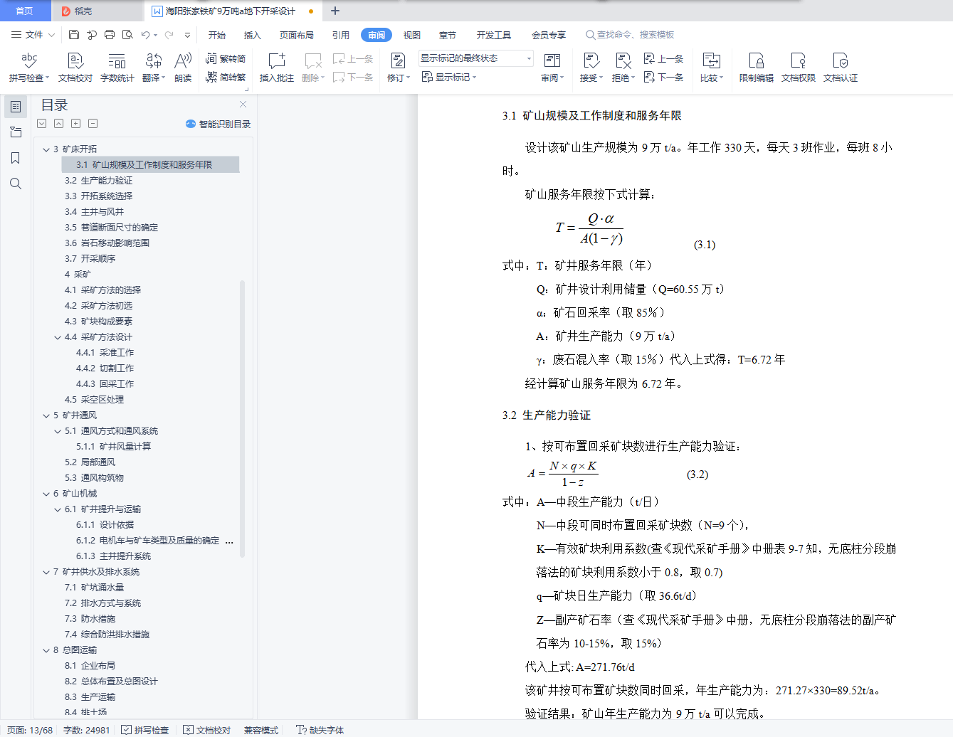 3.1 矿山规模及工作制度和服务年限