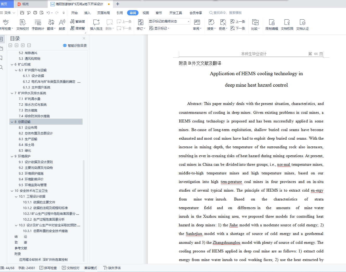 10.3 设计及矿山生产中对安全采取的预防措施 40