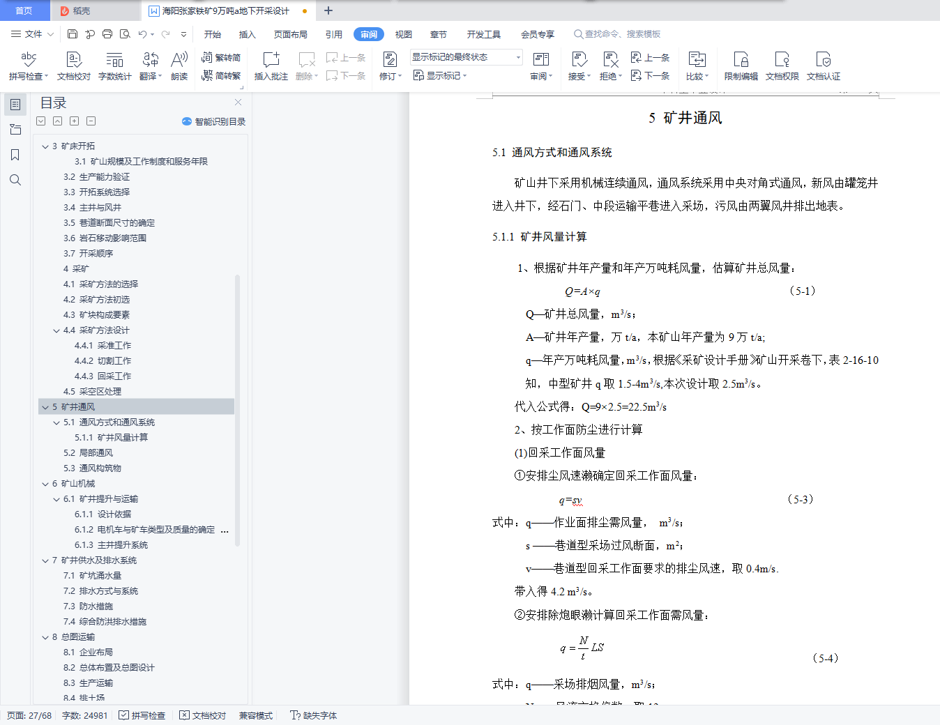 5.1.1 矿井风量计算