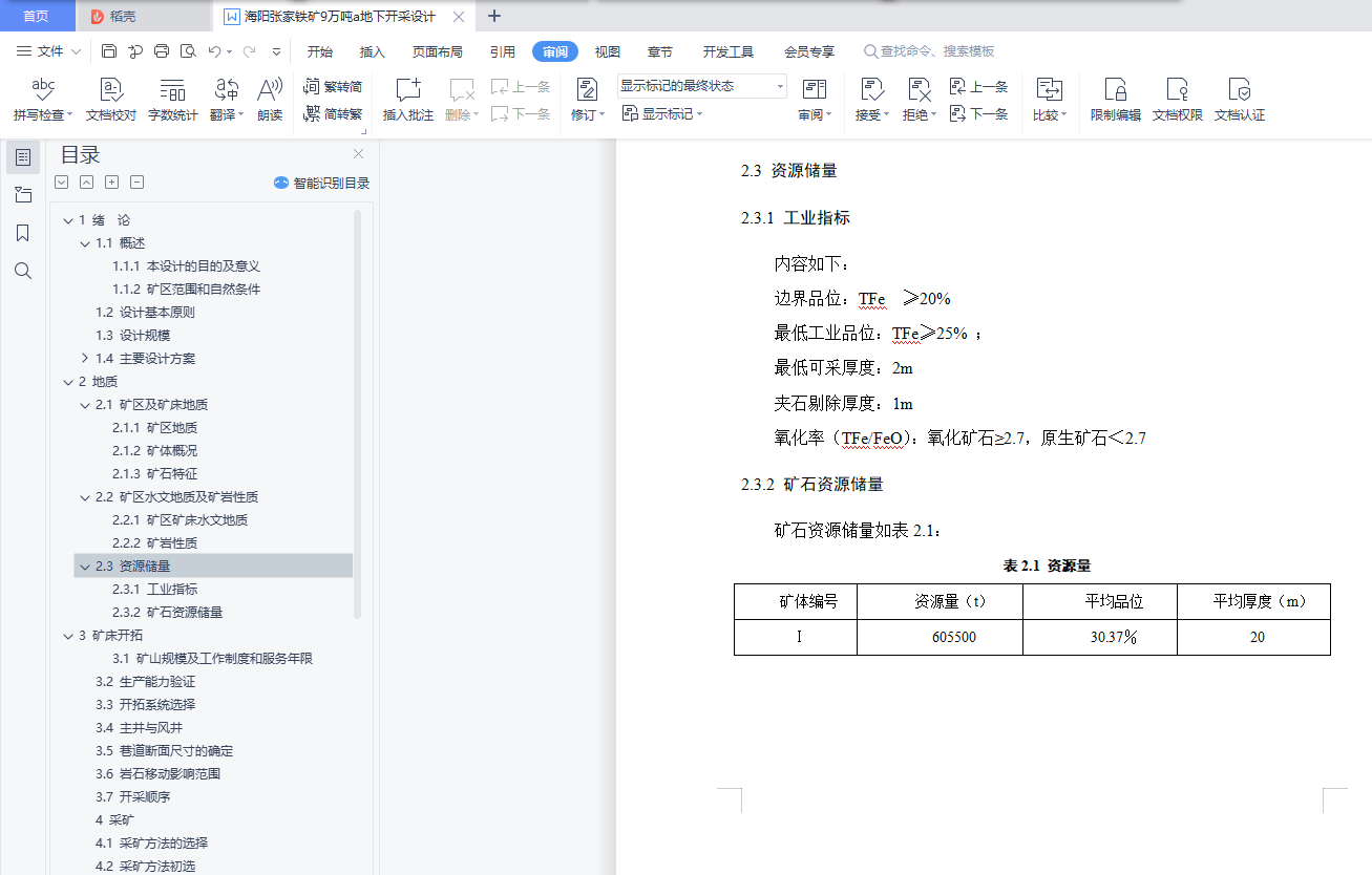 2.3.2 矿石资源储量