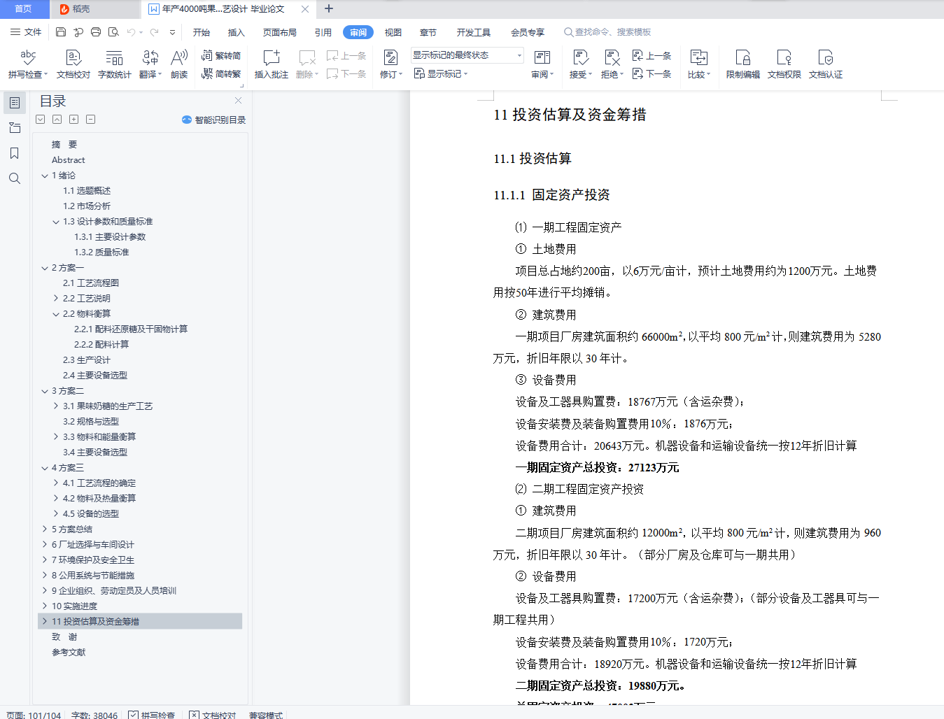 11投资估算及资金筹措